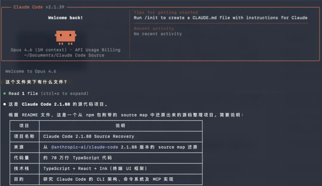 比如你可以让它帮你分析 Claude Code 泄露的源代码文件。