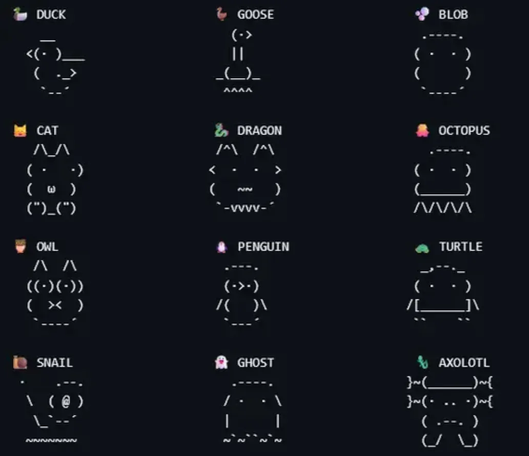 还有人发现 Claude Code 里藏了个宠物模式,会根据用户的 ID 来随机生成不同种族,不同稀有度的赛博宠物来陪大家写代码。