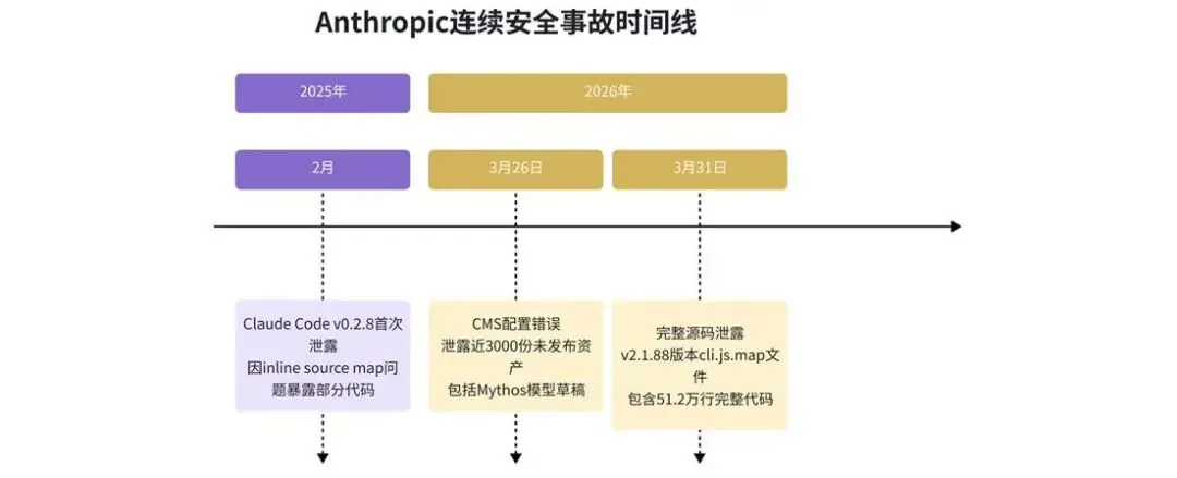 从管理层面分析,这是Anthropic5天内两次安全事故。3月26日,该公司刚刚因CMS(内容管理系统)配置错误,泄露了名为Claude Mythos的模型信息和约3000份未公开的资产。更早之前,Claude Code在2025年2月和2024年12月也分别出现过源码和系统提示词泄露问题。