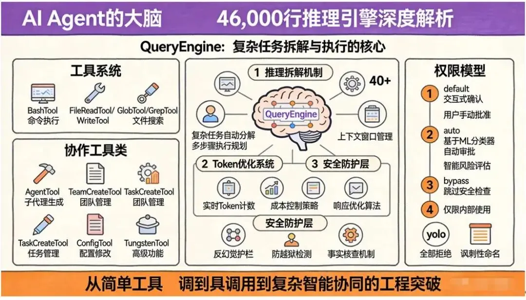 智能核心引擎:QueryEngine.ts文件达4.6万行,负责推理调度 |