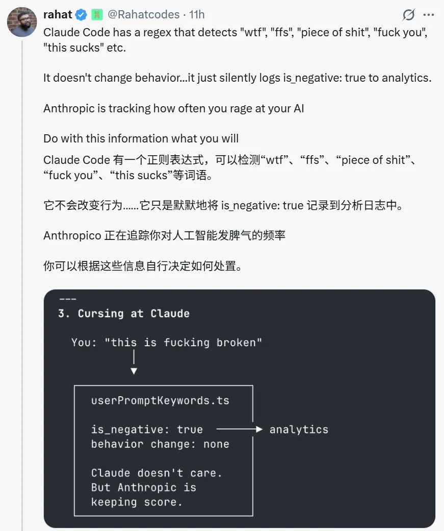 2:对 Claude Code 爆粗口,会被标记为负面输入
