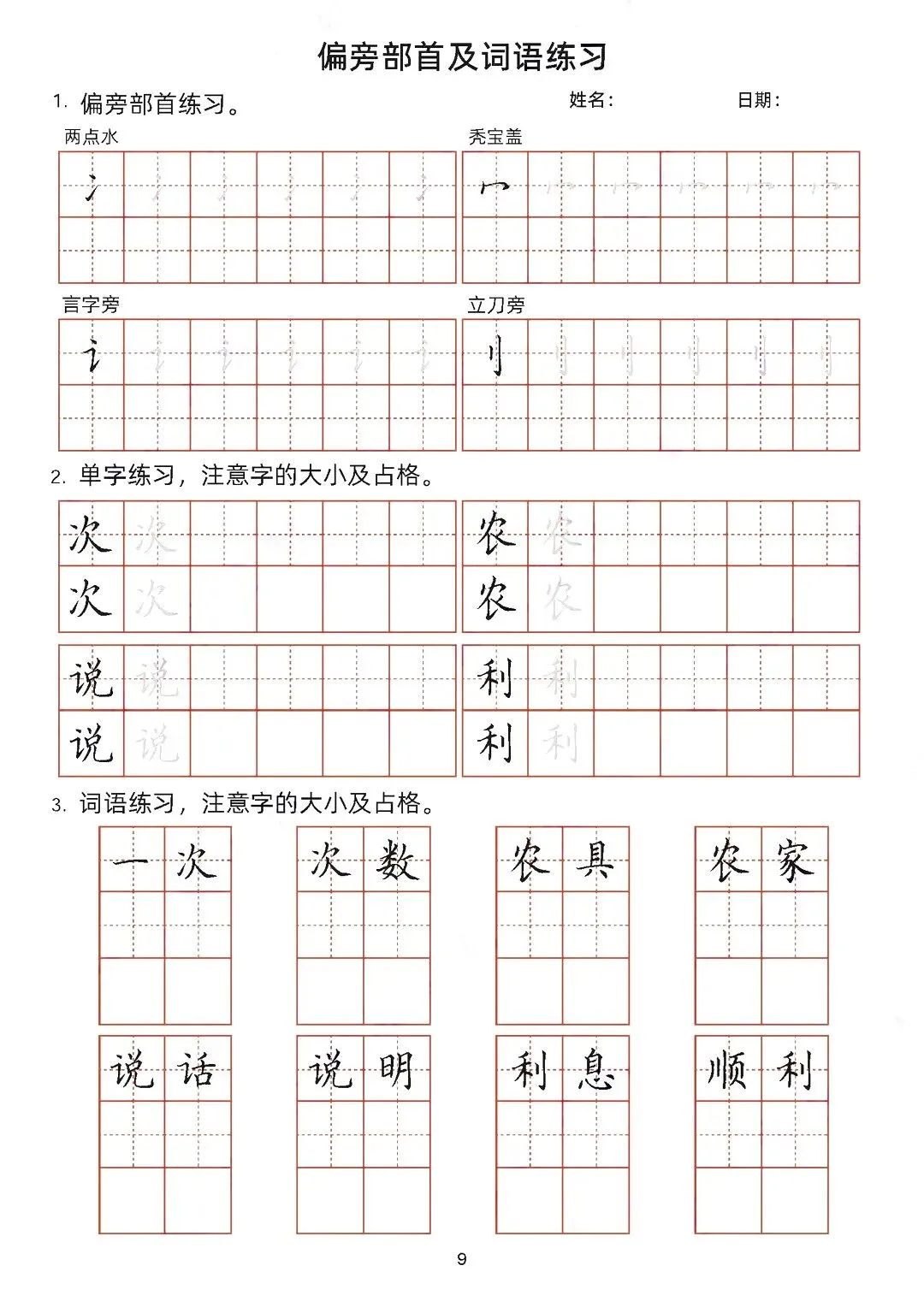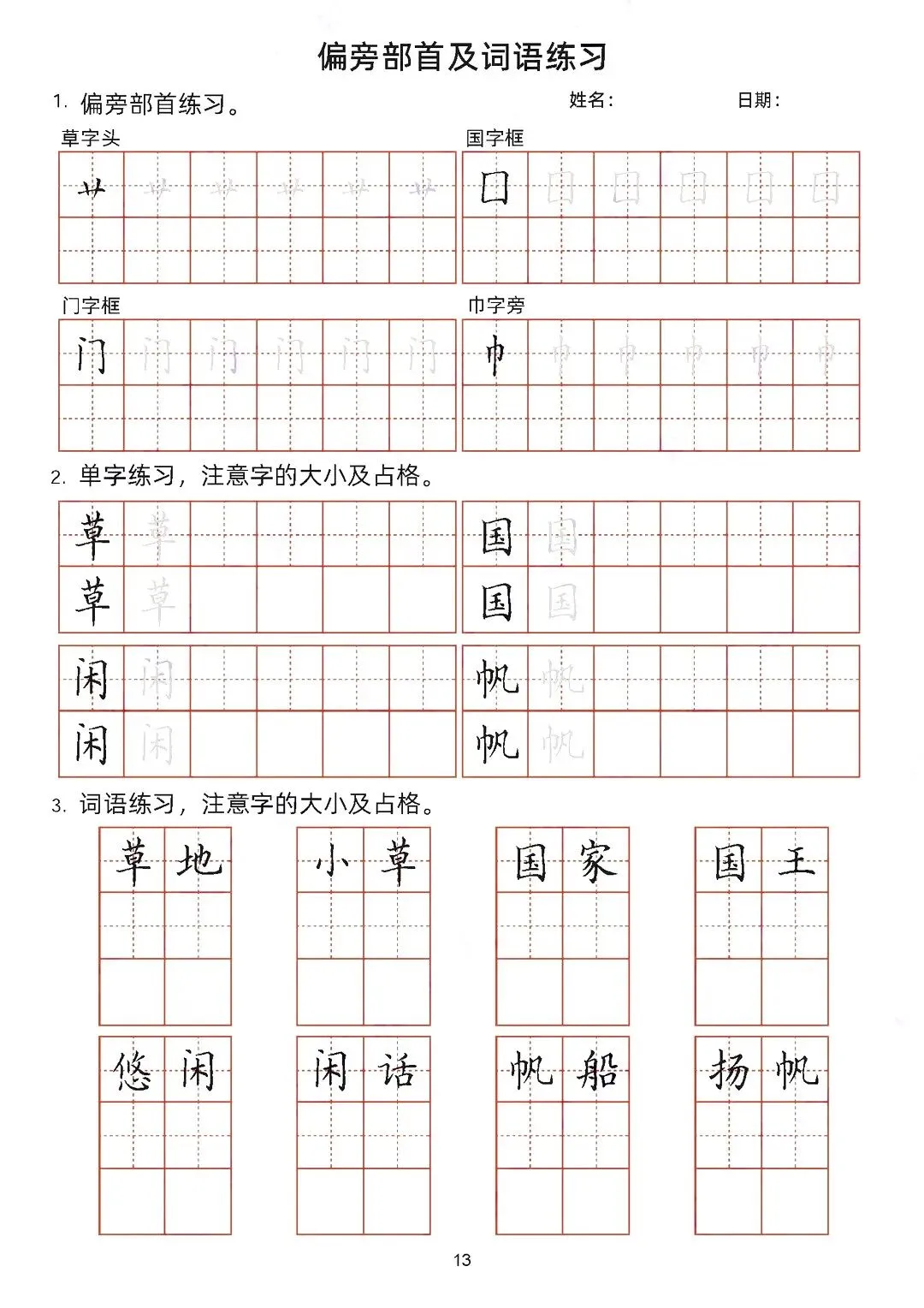 硬笔楷书笔画部首及词语书写训练.pdf(附下载链接)