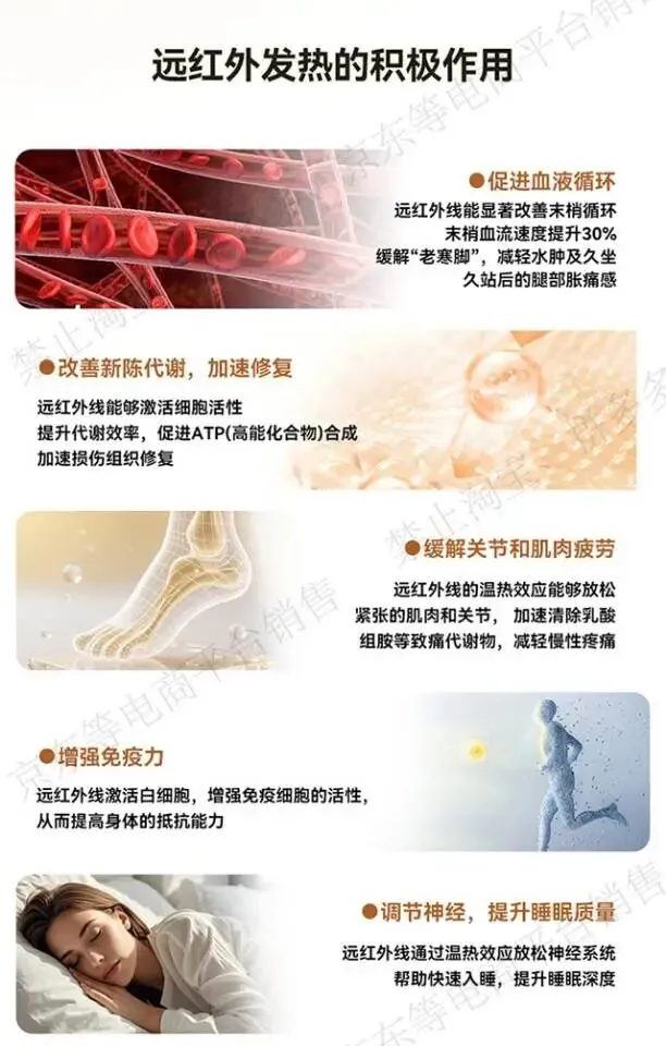 1️⃣ 远红外发热3秒速热,温和发热均匀暖足