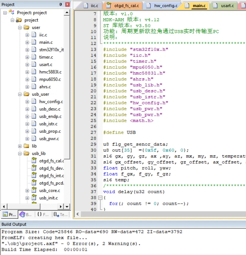 MPU60500开发源码(周期更新欧拉角通过USB实时传输至PC)stm32解析理解并分享