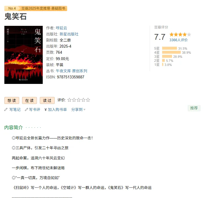 《鬼笑石》是呼延云继《扫鼠岭》《空城计》之后的巅峰力作,一套横跨六十年、双线密室悬案的华语社会派推理史诗。