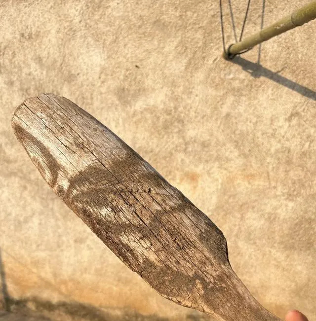 第一张这个,很多人一眼未必认得出来。木头做的,前头宽,后头收一点,拿在手里很敦实,这就是以前补袜子用的袜板。袜子破了个洞,往里一塞,布面绷平了,再拿针线慢慢补。别看它小,过去家里可真用得上,尤其是会过日子的老人,舍不得扔,能补的尽量补。