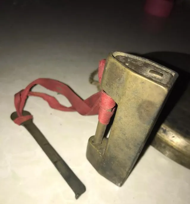 这种老铜锁,小时候很多人都见过。黄铜色的锁身,有点沉,配一根长长的钥匙,开的时候要对准锁眼慢慢插进去。它不只是锁门,有些人家木箱、柜子、抽屉也会挂一把。那时候的锁没有现在花哨,但拿在手里特别实在,咔哒一声锁上,心里也跟着踏实了。