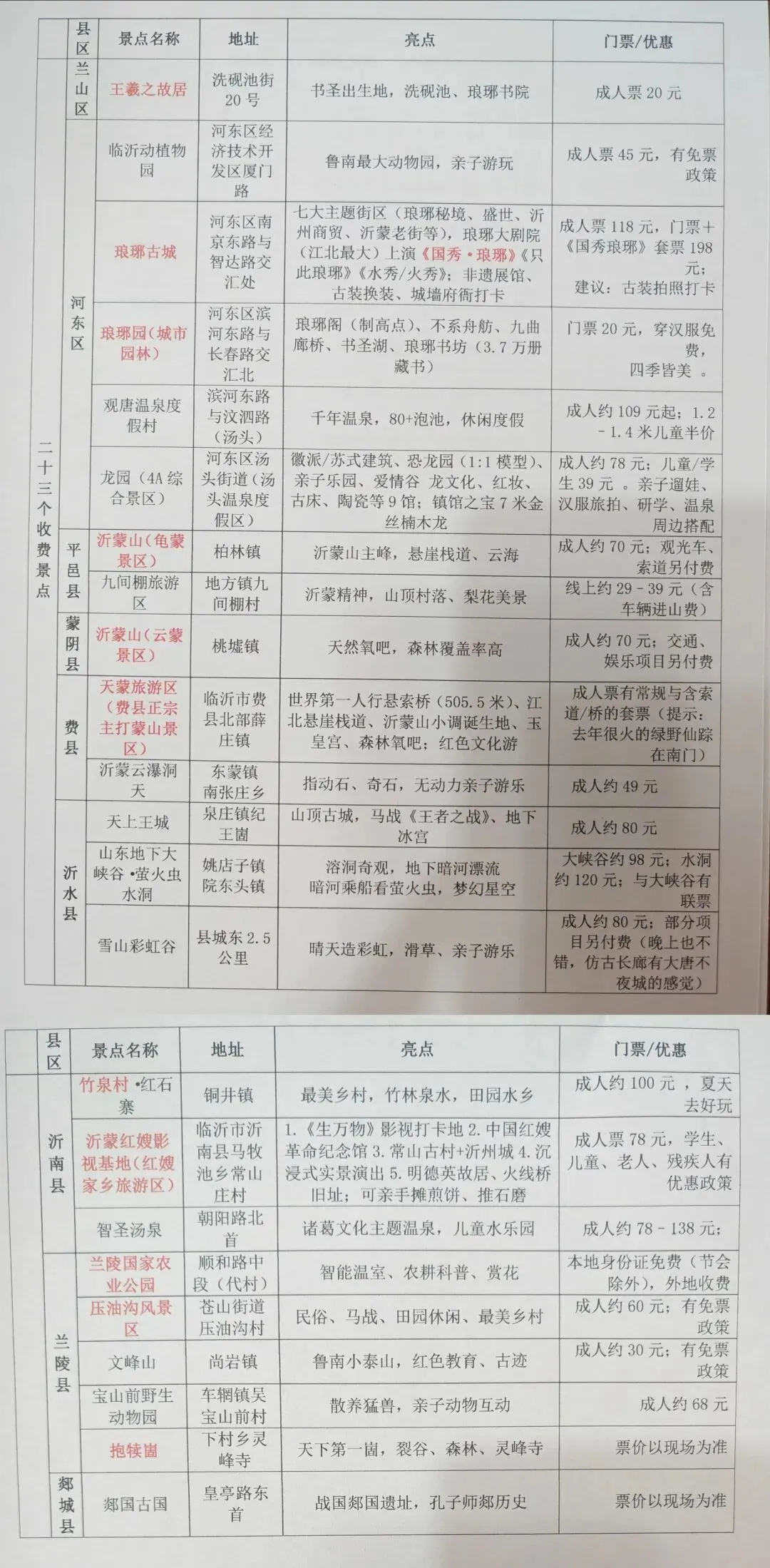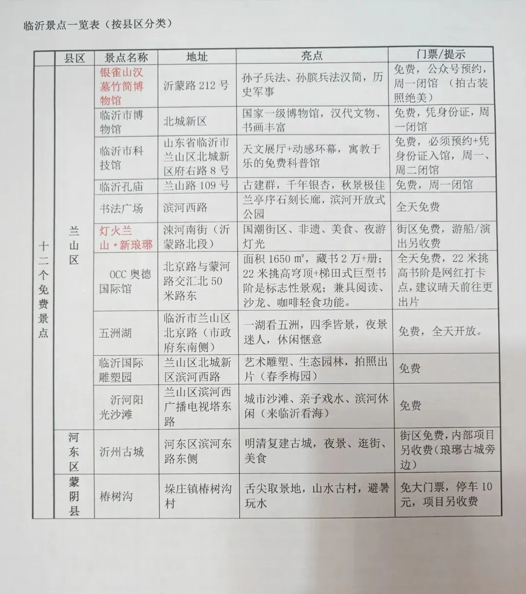 来临沂怎么玩?免费/收费景点一览表(可下载 ) + 超实用旅行攻略