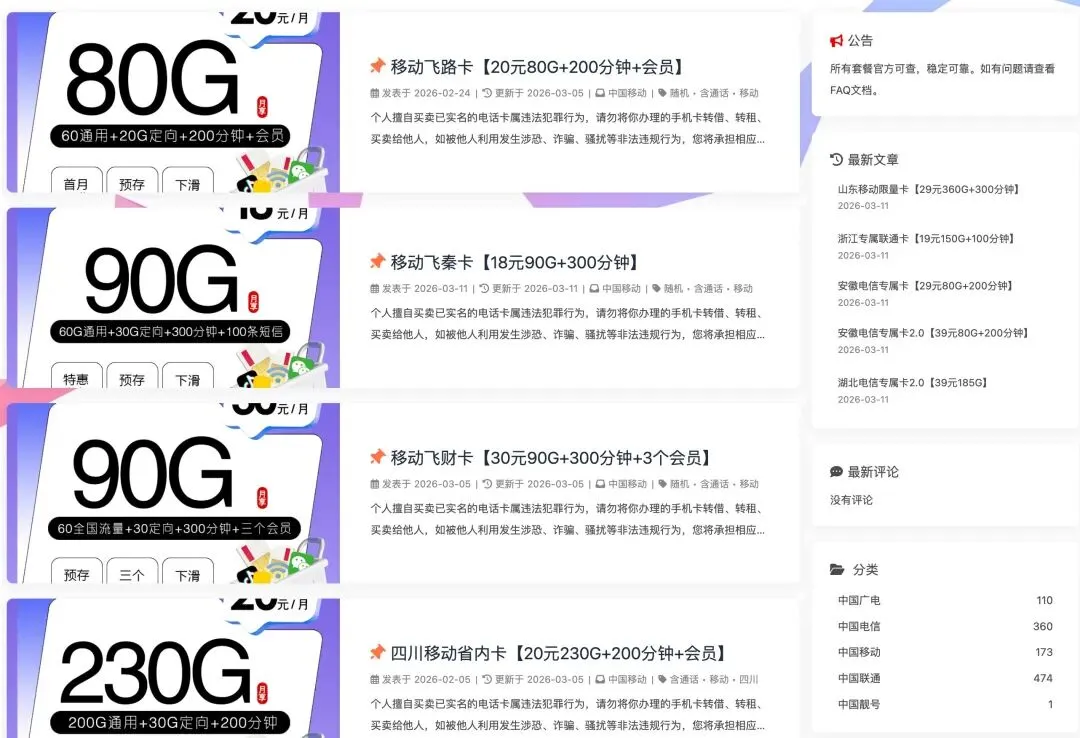 1. 每个套餐的详细信息,包括优惠信息,归属地,申请限制条件等等。由于网站基于 hexo,因此每个套餐的详细信息都对应着一个 markdown 文本文件。 -