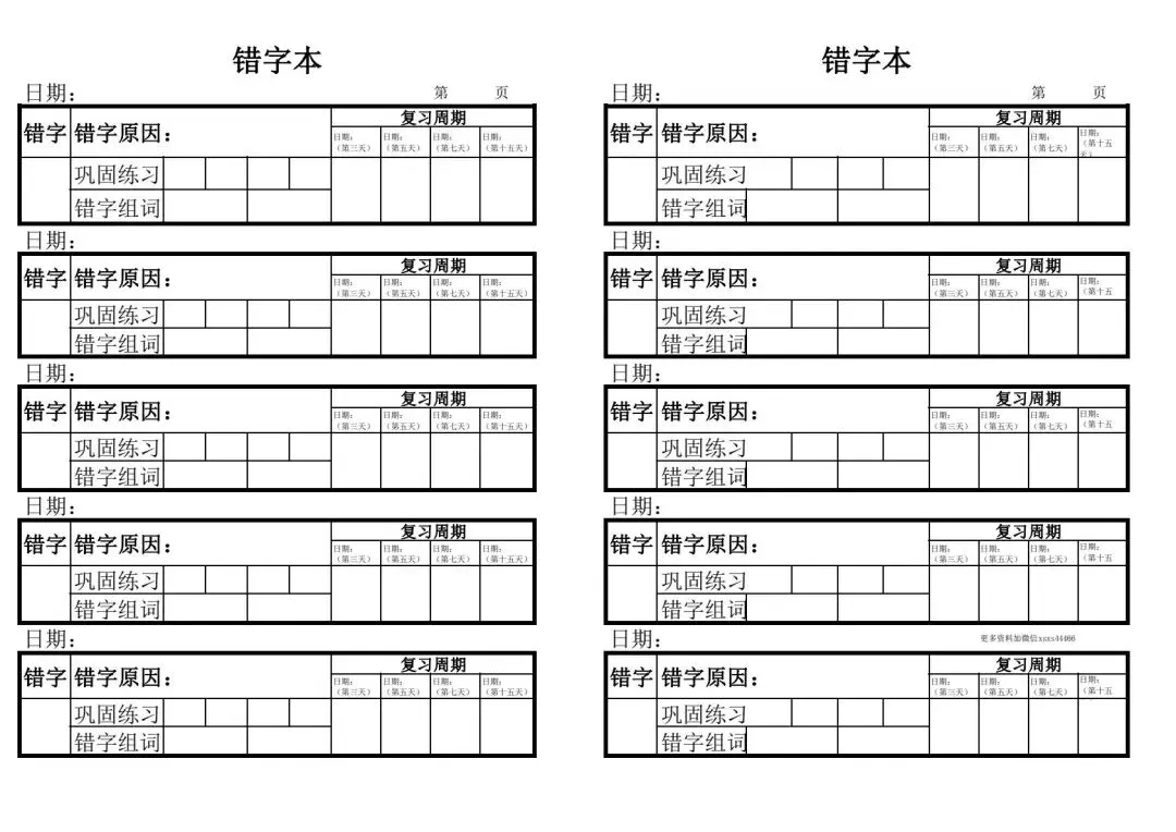 本文内容分享【错字本模板】