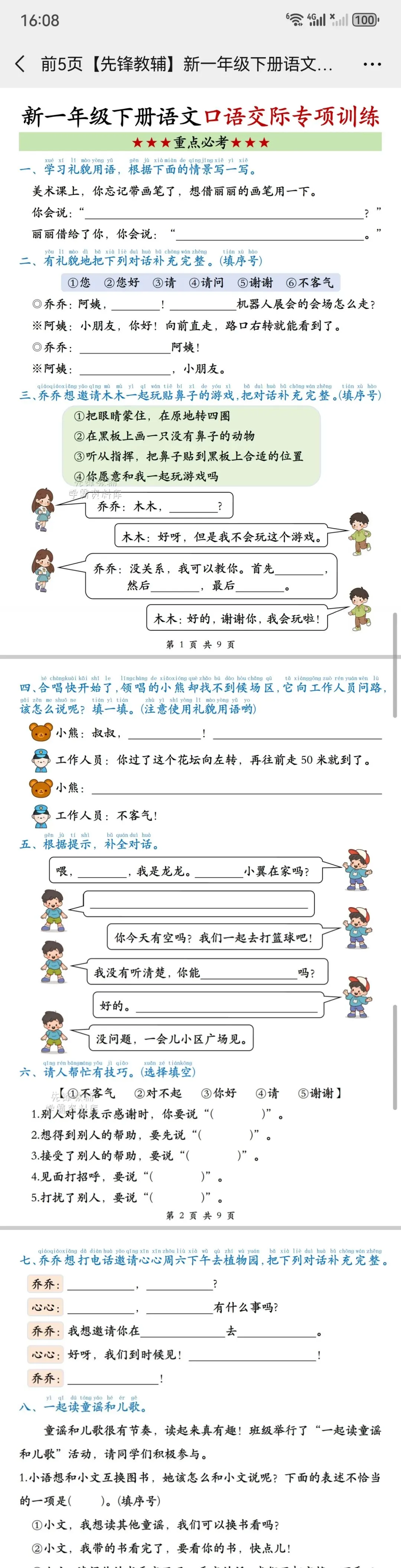一下语文口语交际专项训练,完整电子版可打印