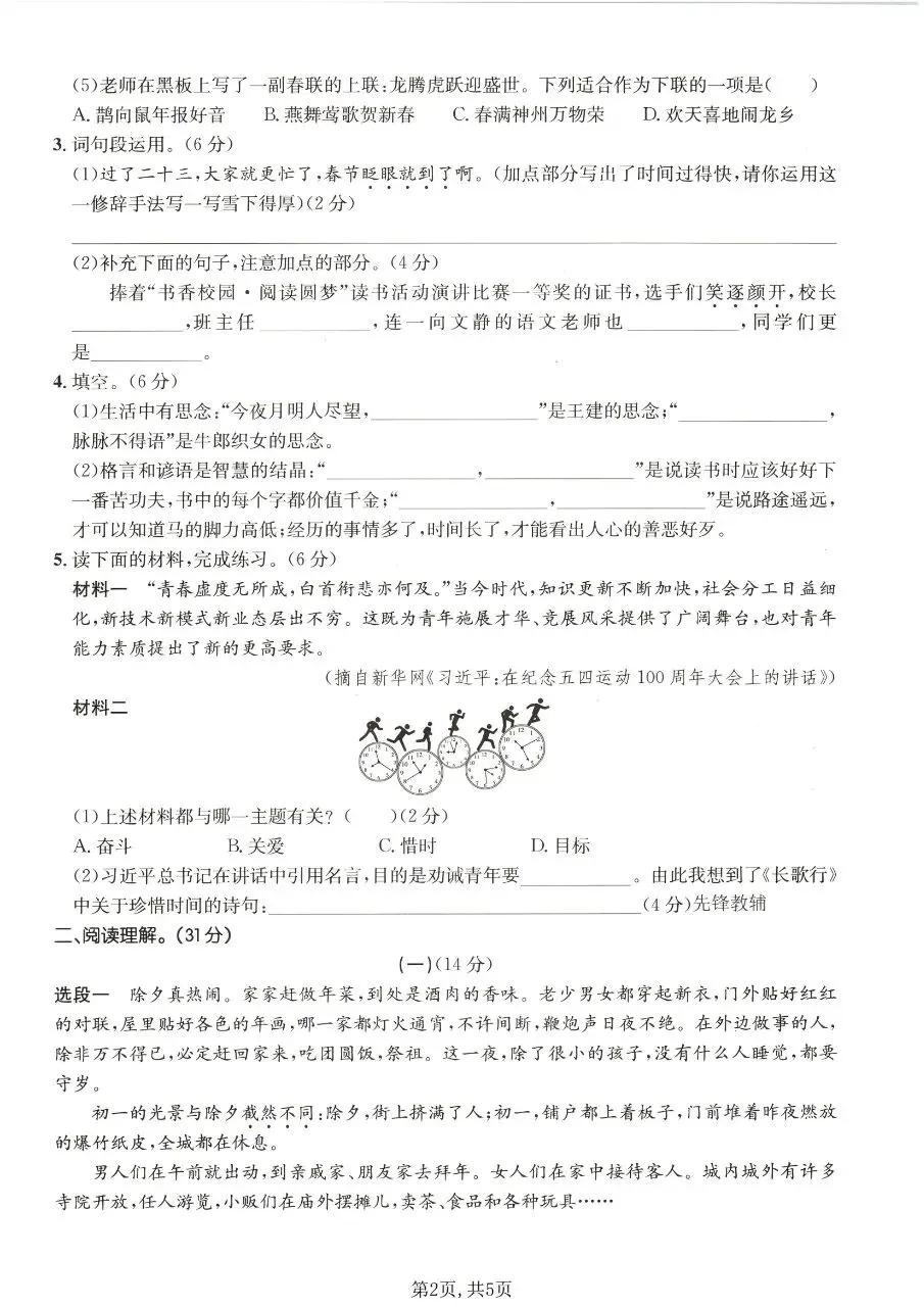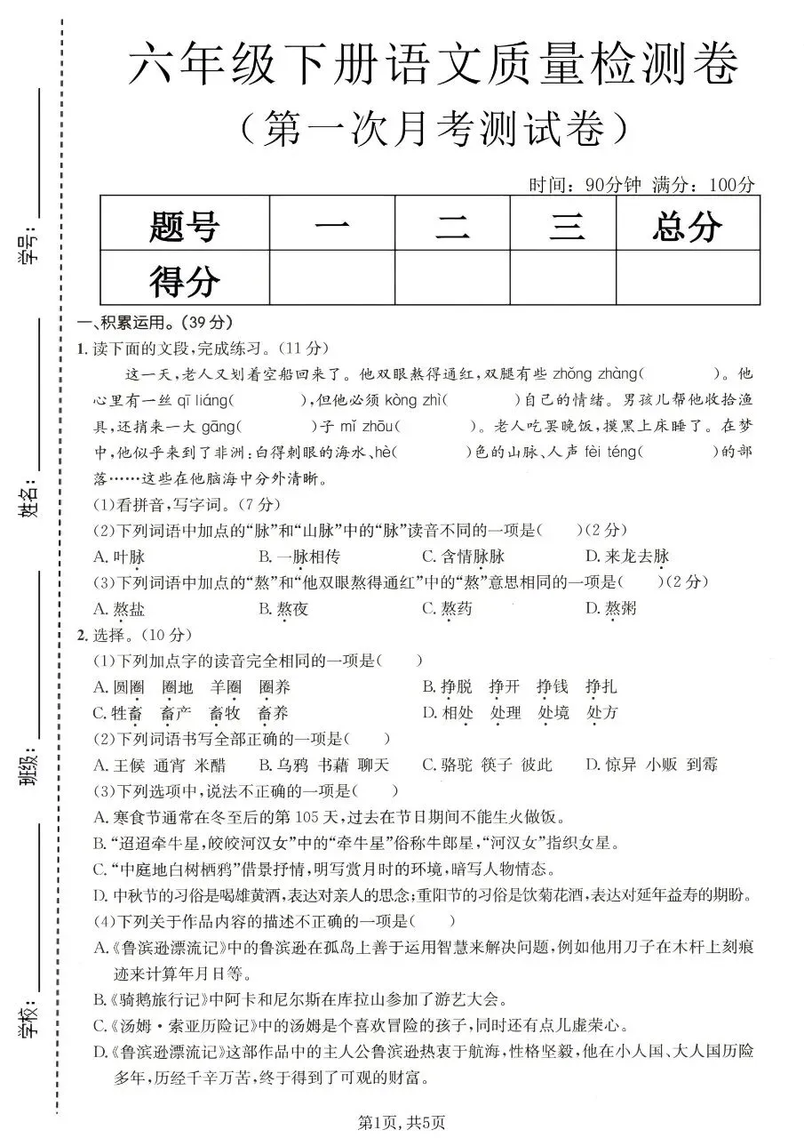 六年级下册语文|第一次月考测试卷(可下载打印) 小学资料每日更新,具体看完整PDF版本 (温馨提示:文末👇有完整电子版下载🔗) 新版六年级下册语文 第一次月考测试卷 △因篇幅有限,只展示部分资料截图△ ↓↓↓ 领取完整电子版: ①:点一点右下角的“👍”和“❤️”,感谢🙏 ②:在公众号对话框回复:1053 资料合集:👇👇 小学学习方法 六年级下册数学 六年级下册英语
