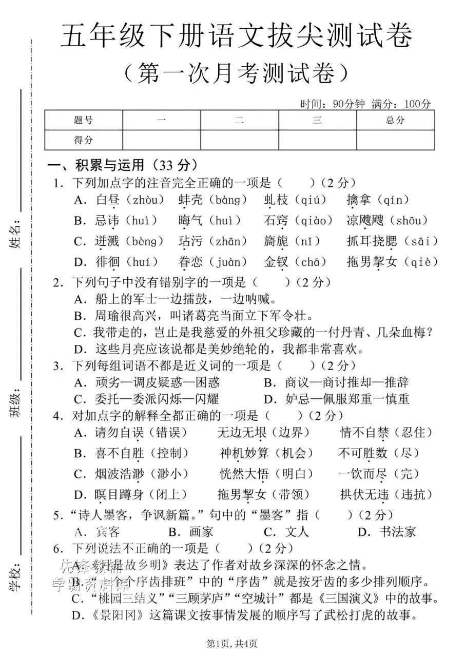 五年级下册语文|第一次月考测试卷(可下载打印) 小学资料每日更新,具体看完整PDF版本 (温馨提示:文末👇有完整电子版下载🔗) 新版五年级下册语文 第一次月考测试卷 △因篇幅有限,只展示部分资料截图△ ↓↓↓ 领取完整电子版: ①:点一点右下角的“👍”和“❤️”,感谢🙏 ②:在公众号对话框回复:1053 资料合集:👇👇 小学学习方法 五年级下册数学 五年级下册英语