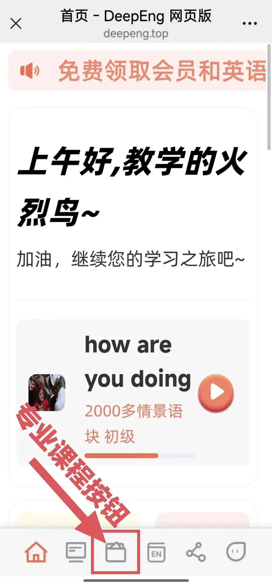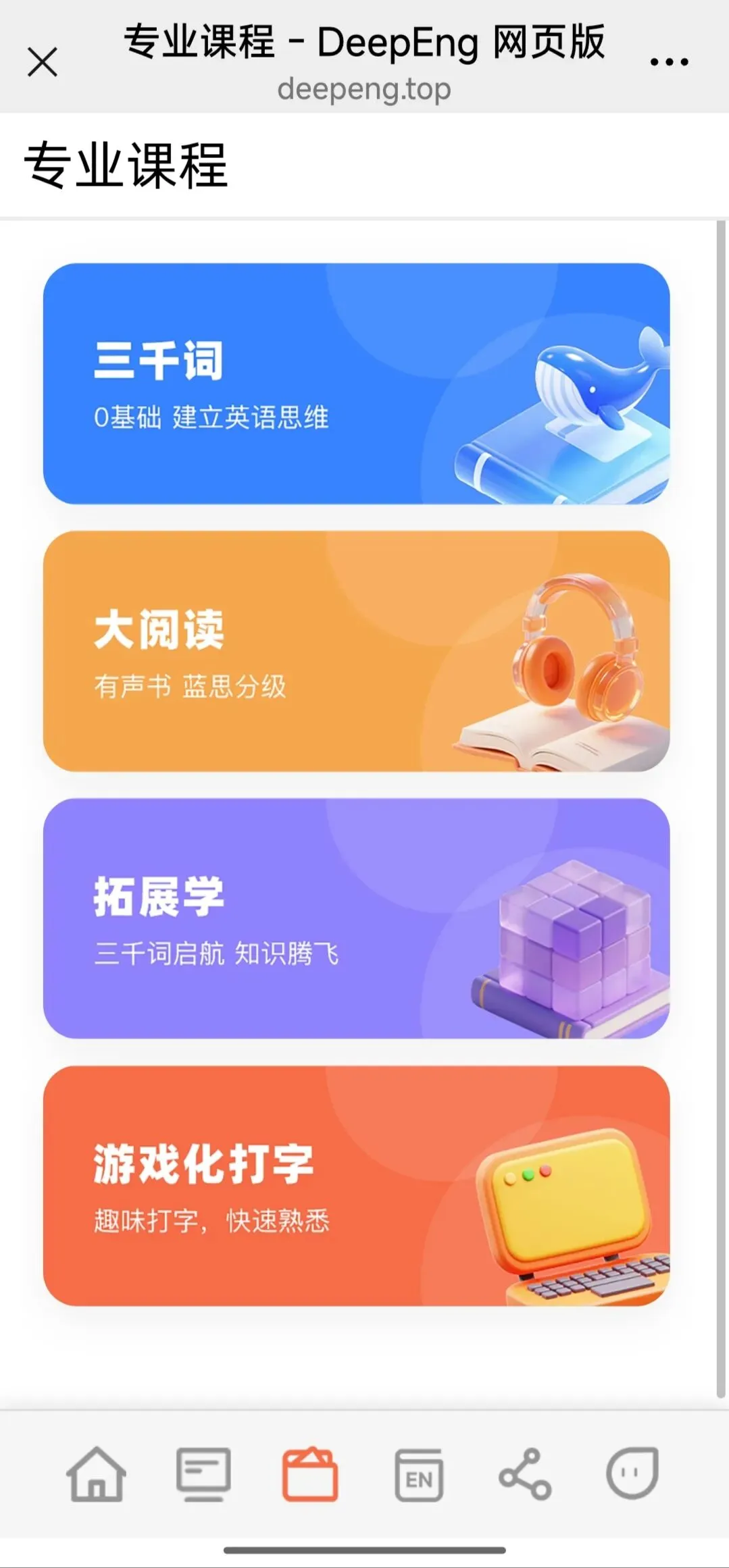 点击“专业课程”按钮,即可进入深度英语专业课程系统板块。