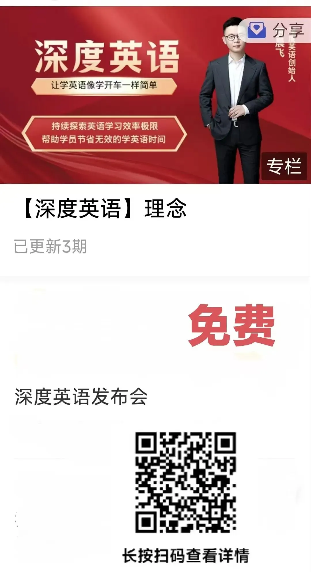 【注】:想要体验深度英语专业课程的,识别下图登录进入,然后点击“专业课程”按钮,即可体验专业课程的部分内容。详情咨询→添加微信18970857534