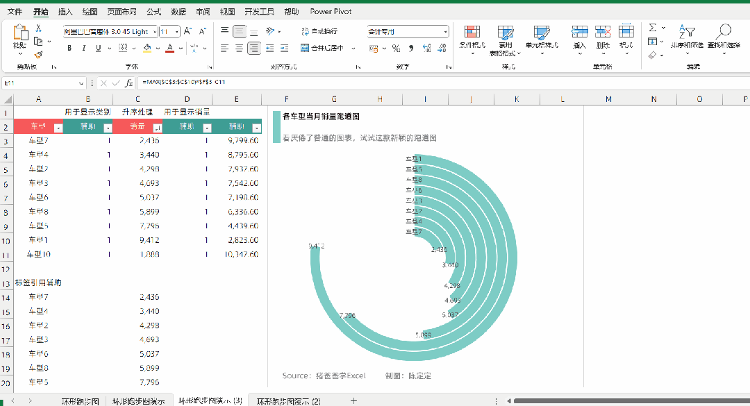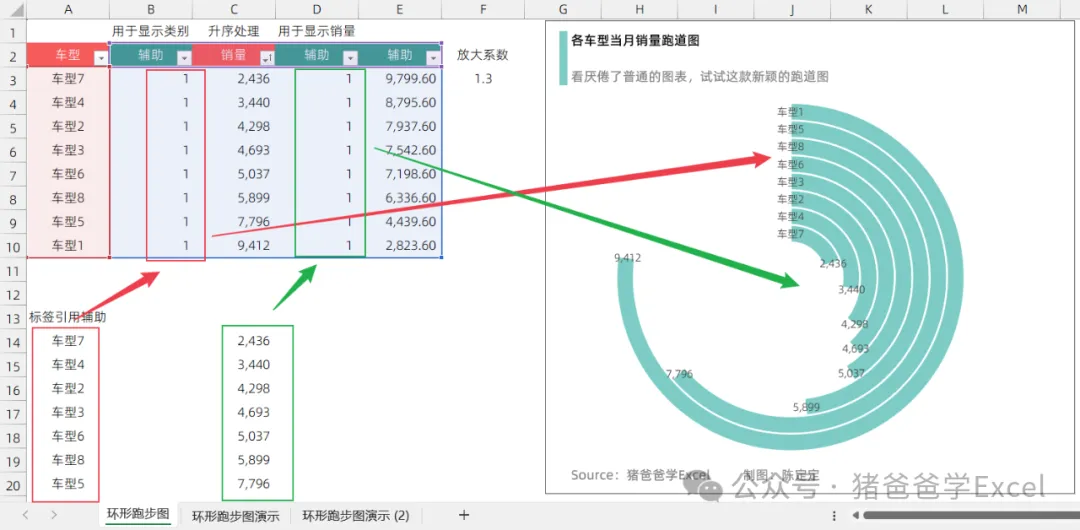 Excel创意图表-跑道图|排名占比等数据展示分析