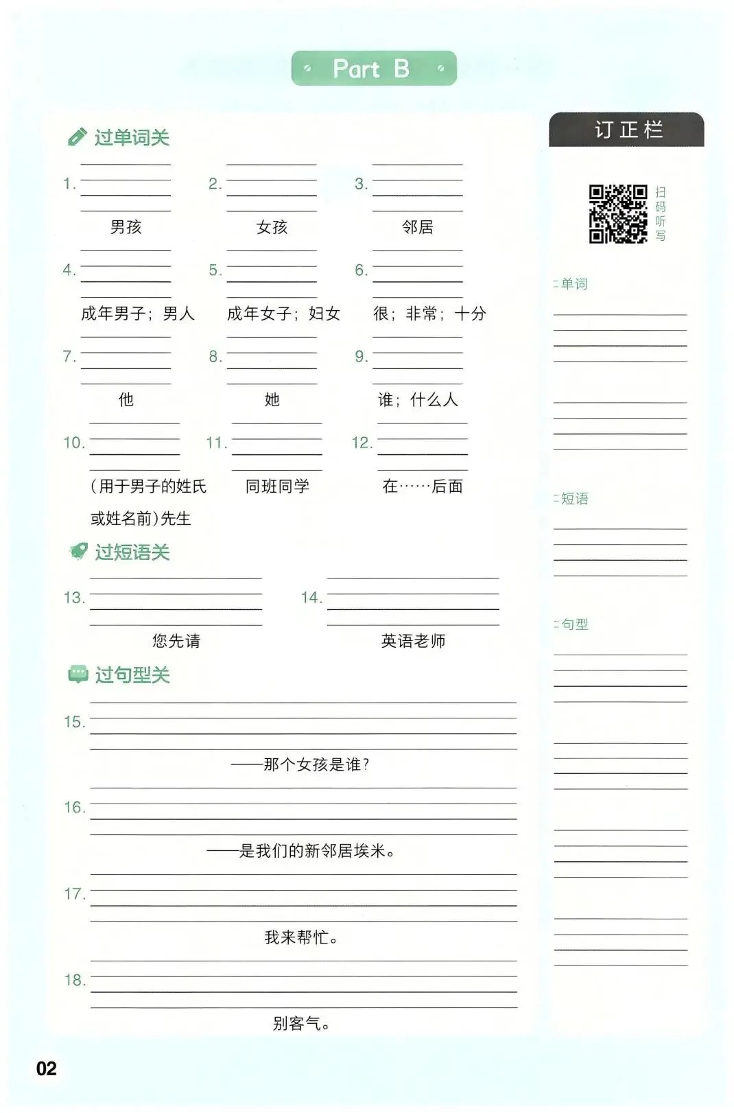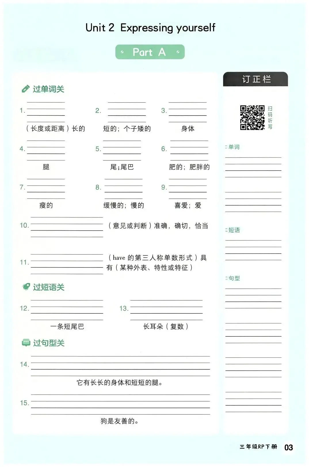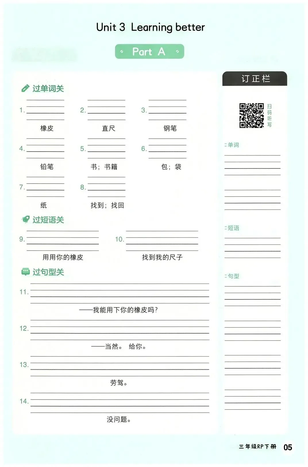 新版人教三下英语词句默写(16页)(高清可下载) 小学精选同步试卷来啦!通过练习既能检验孩子知识点的扎实度,揪出薄弱环节,也能助力新课预习、旧知巩固,让学习节奏不脱节,快陪孩子练起来吧!建议各位家长领取打印给孩子学习! (温馨提示:文末有完整电子版领取方式) 课本同步学习工具 推荐图书 免费领取完整电子版: ①:点一点右下角的“赞”和“在看”,感谢!②:在公众号对话框中回复:1084 说明 本微信公众账号分享的资源均通过网络等公共合法渠道获取,仅供试用!版权归原出版机构、影像公司或作者所有,资源仅限家庭学习交流与辅助购买决策使用,严禁商业用途。文章中的视频及图片亦来自网络,若有侵权,请及时联系删除。