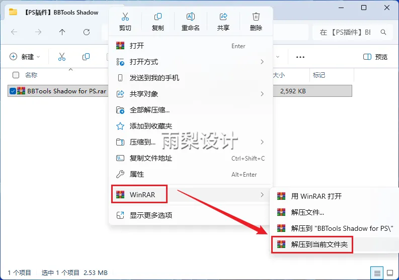 1.右键下载的插件压缩包,并【解压到当前文件夹】