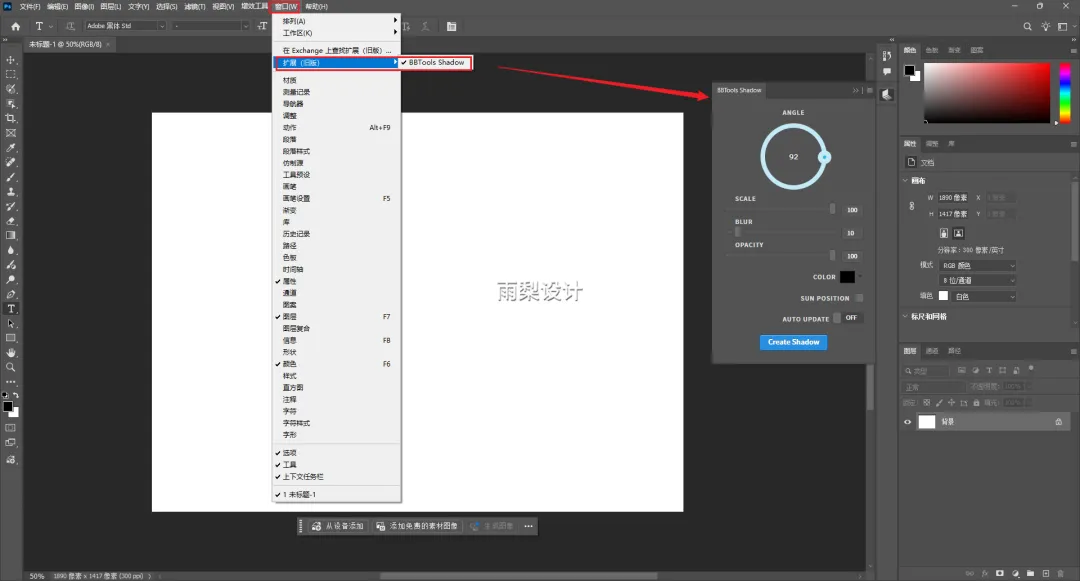 4.打开PS软件:点击【窗口】>【扩展】>【BBTools Shadow】