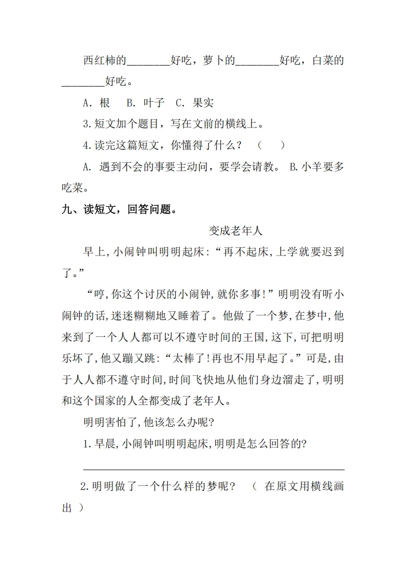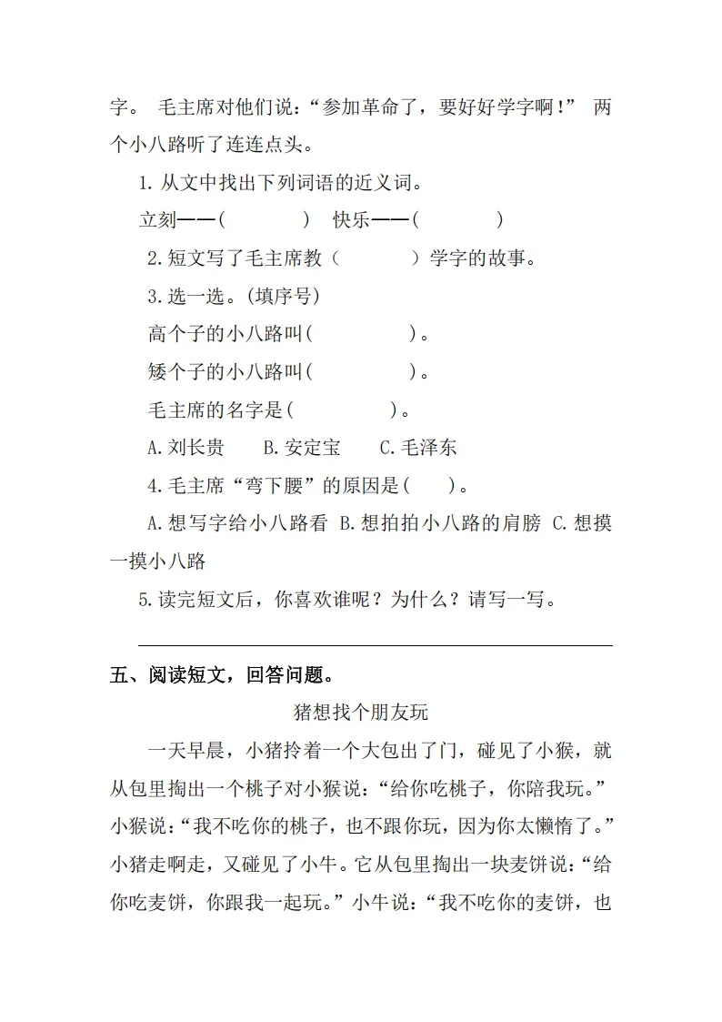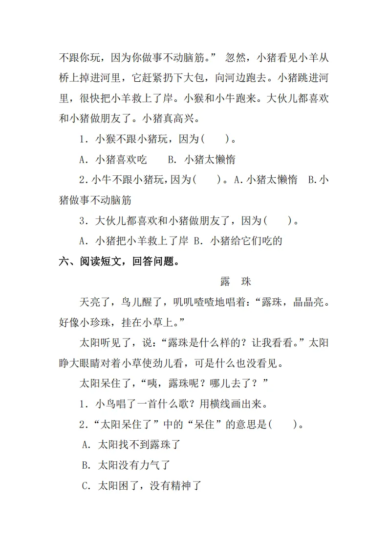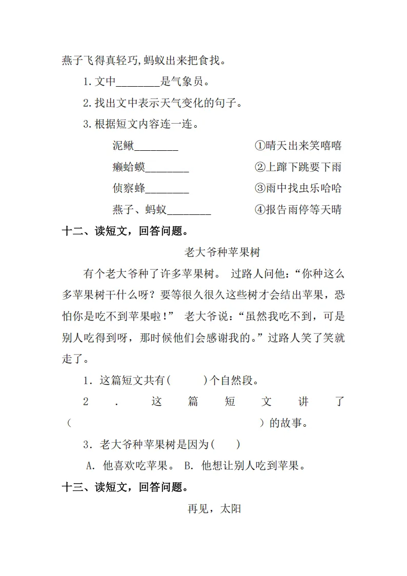 小学一年级下册语文|课外阅读专项训练(可打印)