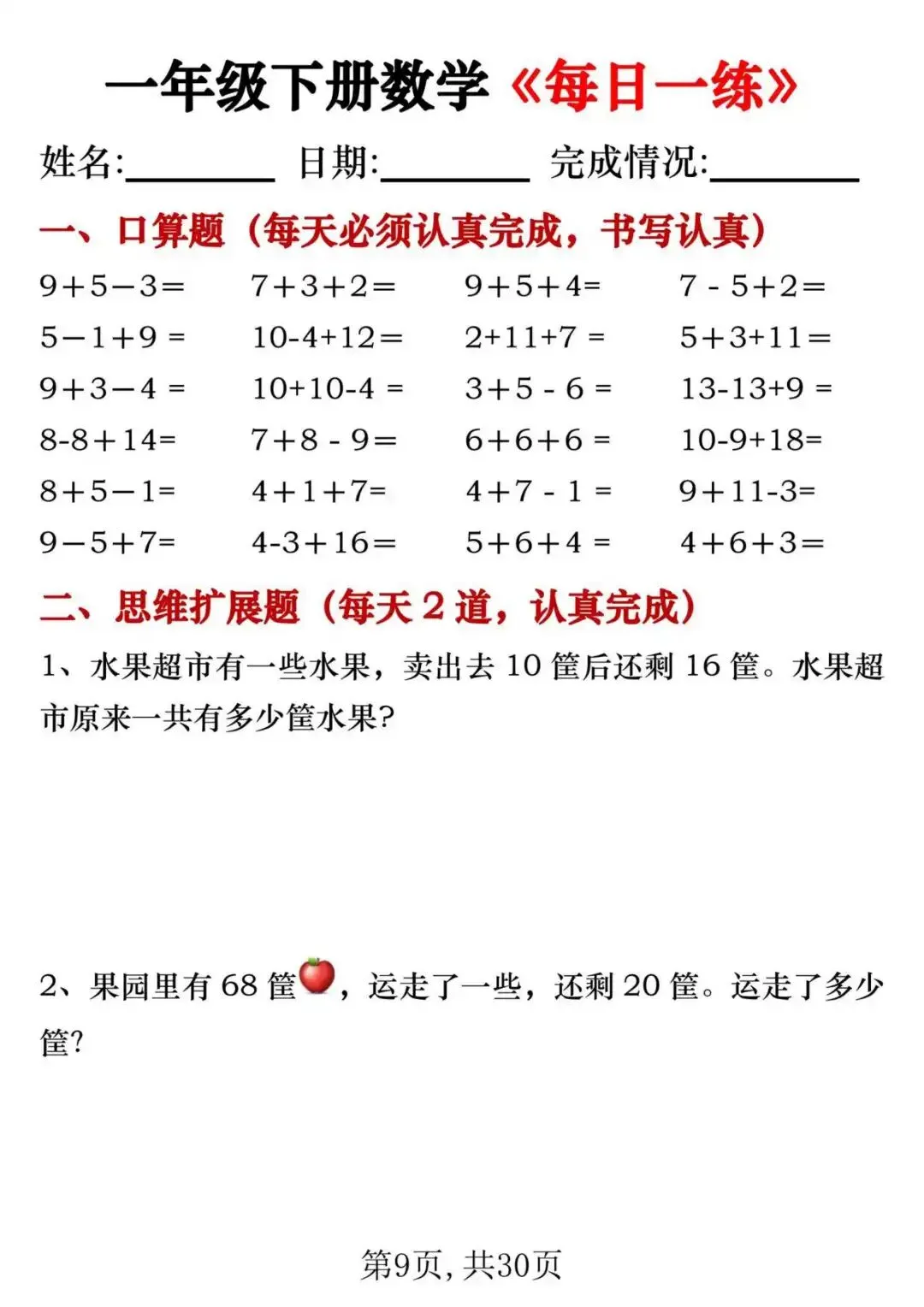 今天涵涵的学霸日记给大家分享的是26新版一年级下册数学每日一练,这份【一年级下册数学每日一练】,告别枯燥刷题,把数学知识融入趣味题型中,让孩子在做题中感受数学的乐趣,不知不觉掌握知识,提升能力!