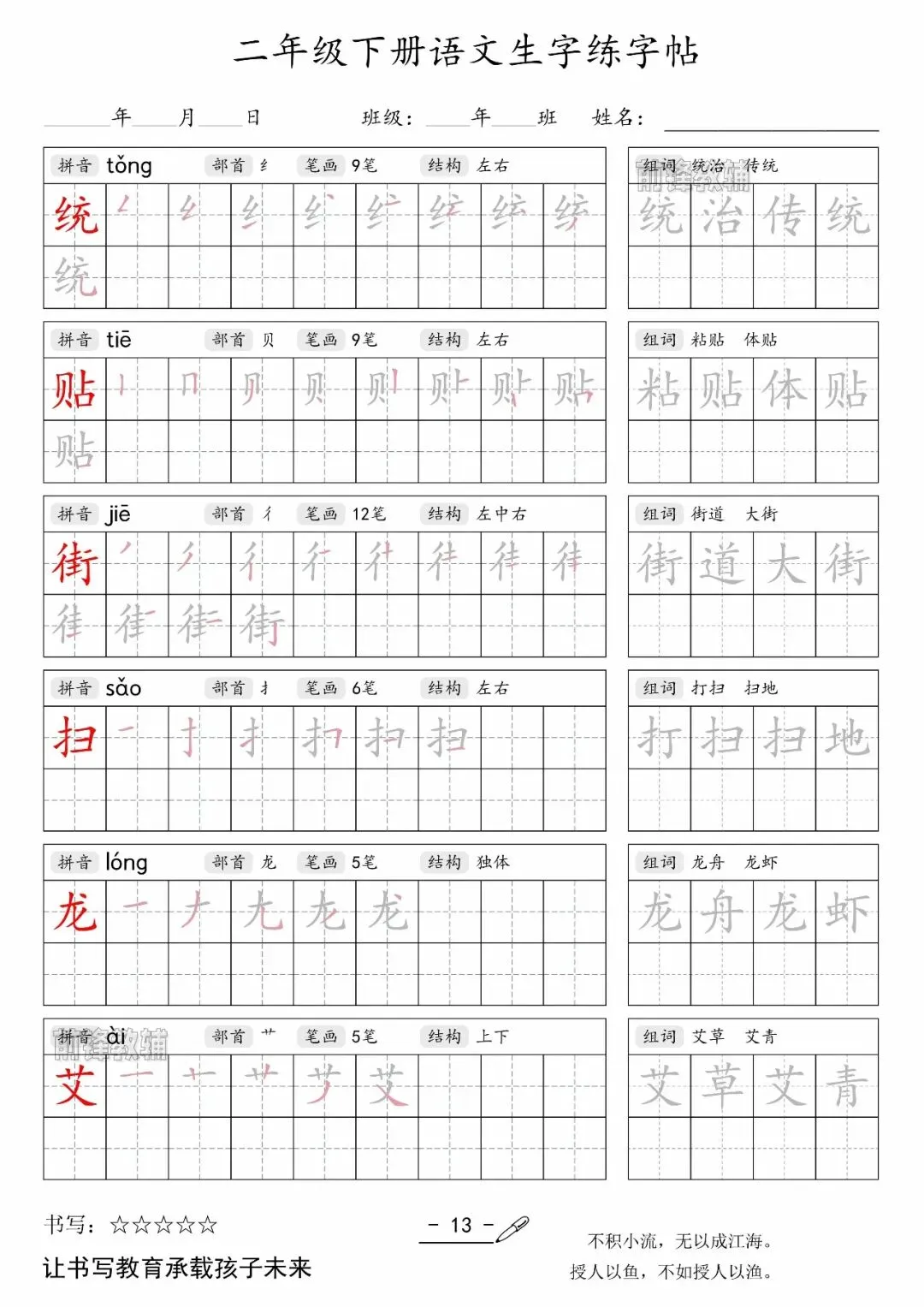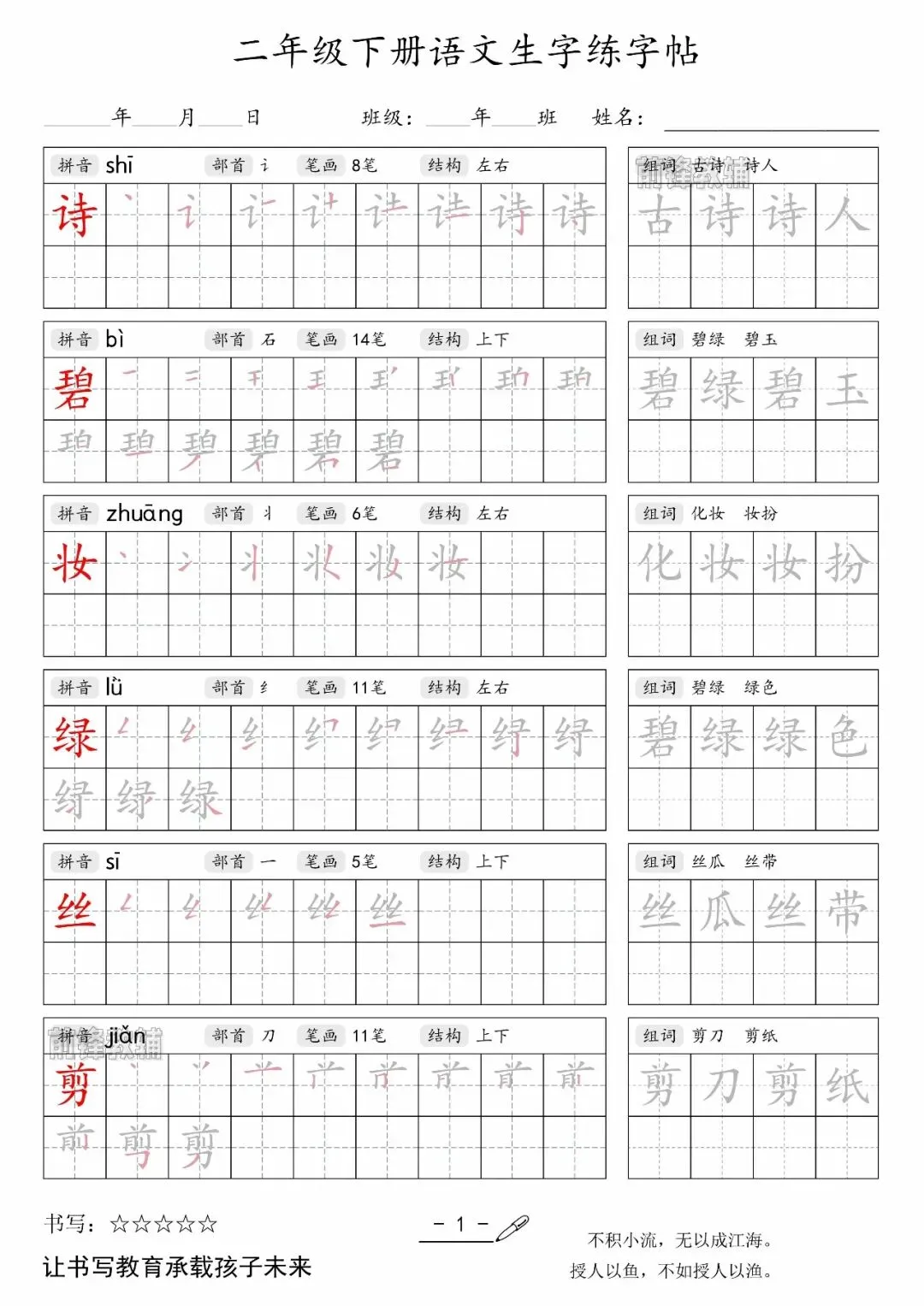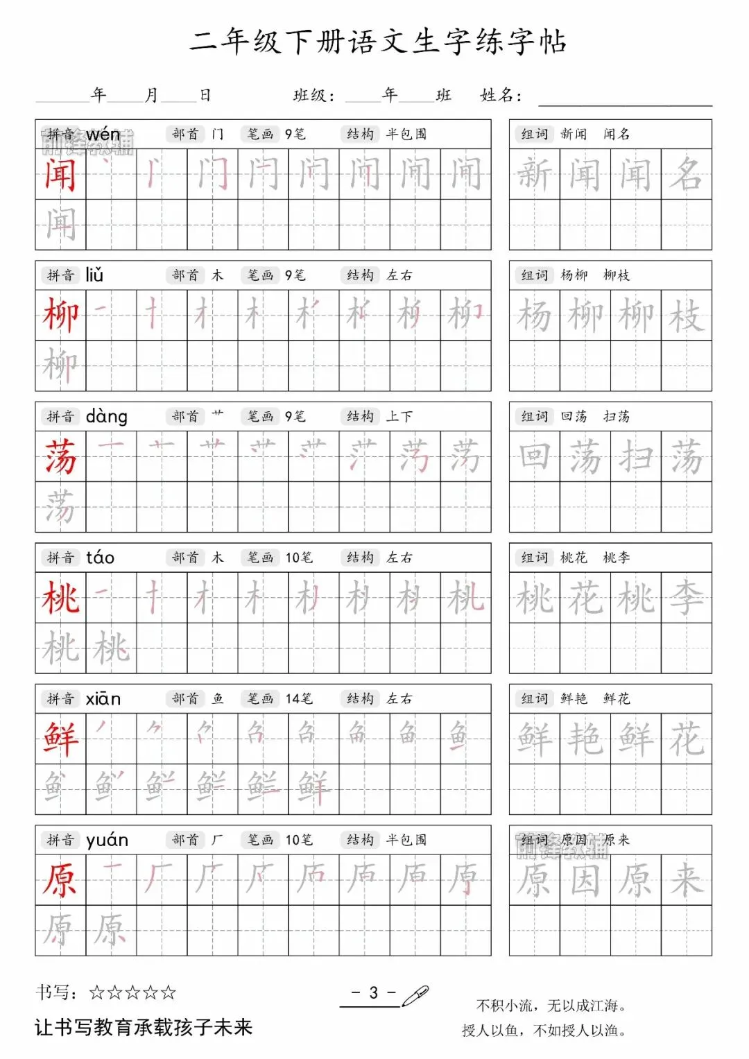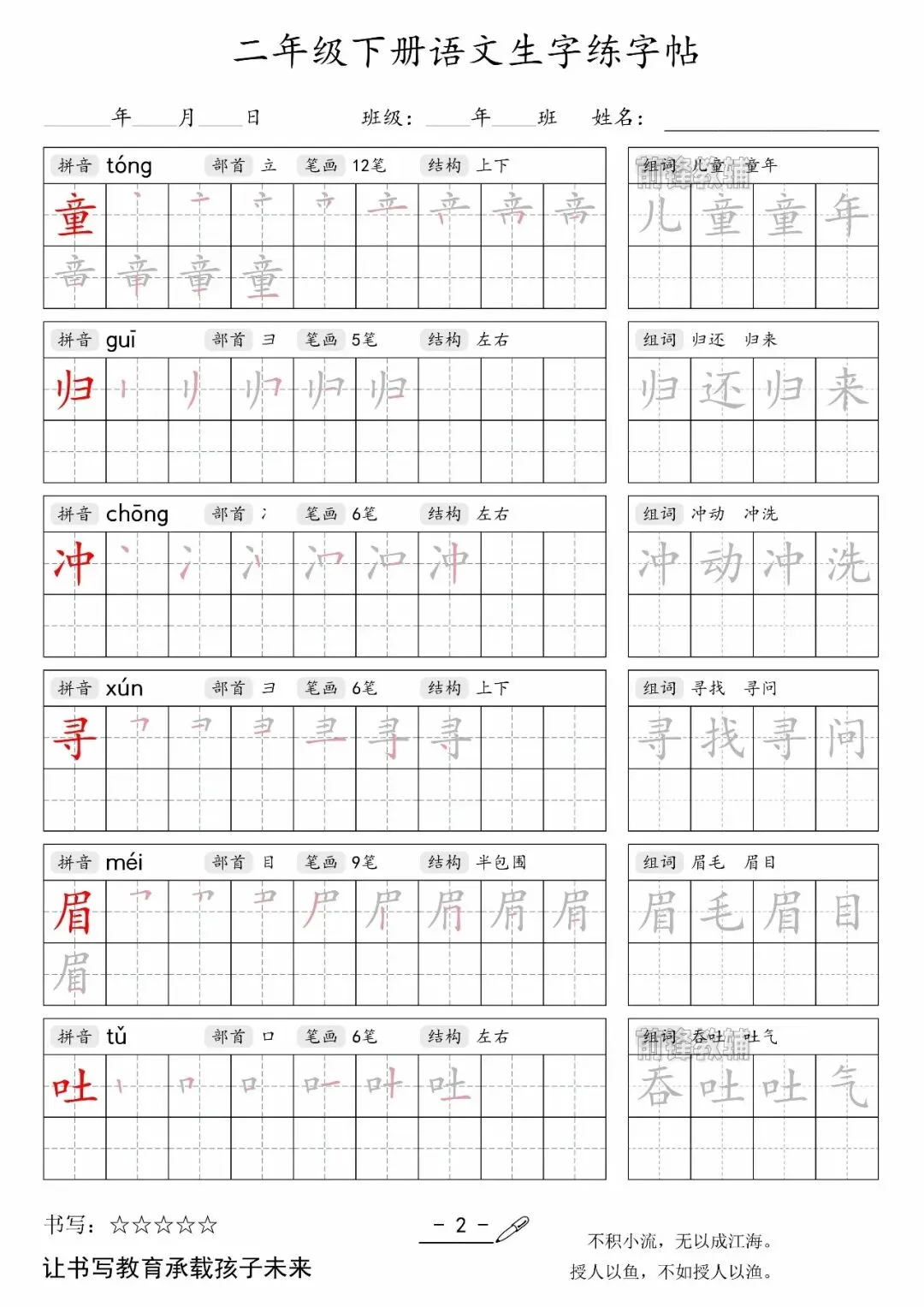 二年级下册语文生字练字帖 完整高清电子版可打印