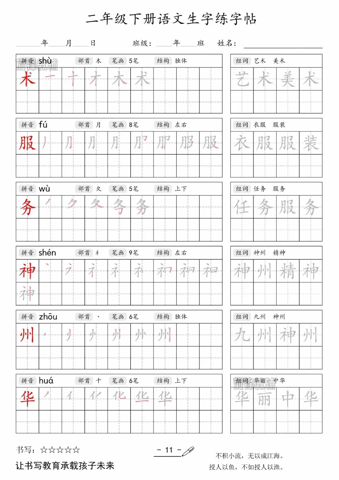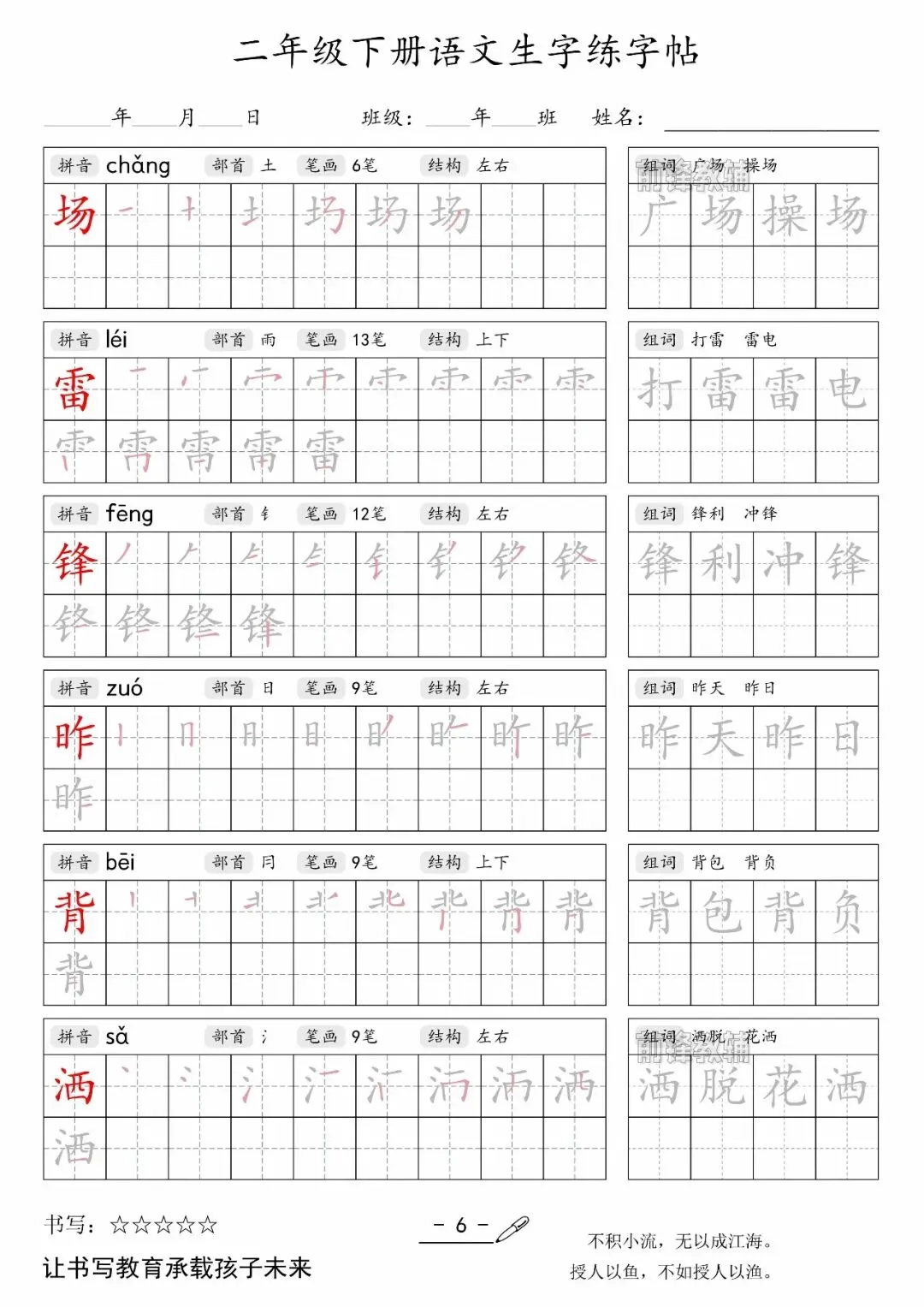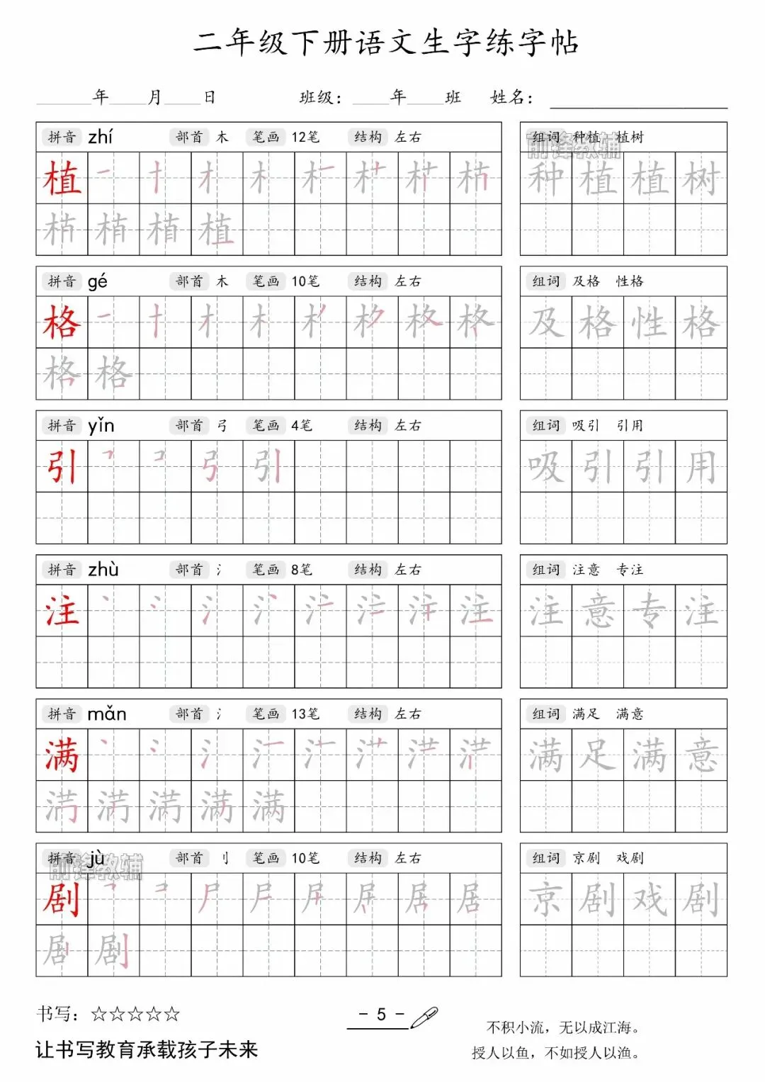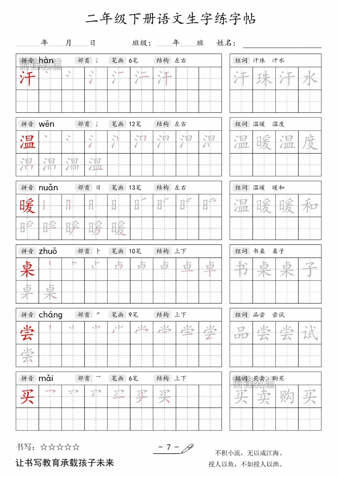 二年级下册语文生字练字帖 完整高清电子版可打印