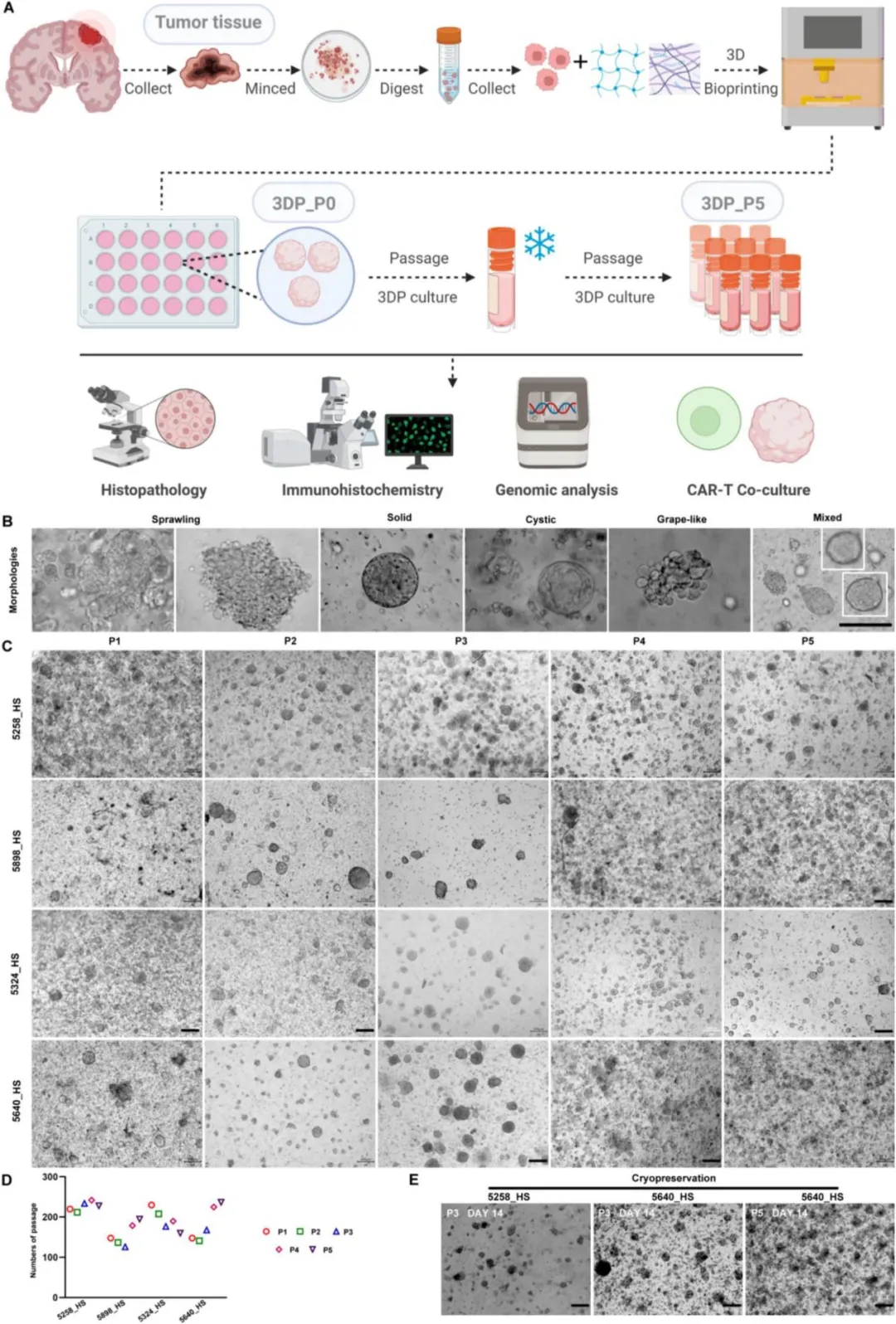 开发了一种3D生物打印平台,该平台能够支持患者来源的GBM 3D模型连续培养6周或进行5次连续传代。