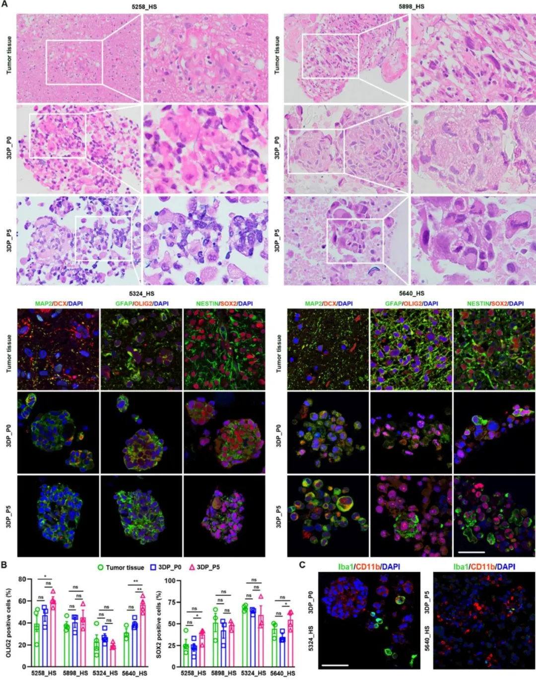 3. 建立了标准化的GBM 3D模型,保留了原始肿瘤组织的组织学特征、细胞异质性与体细胞突变。
