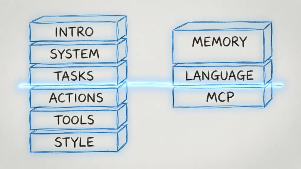 想象你是一个刚入职的AI助手。有人递给你一本厚厚的「工作手册」,里面有你的身份定位、做事原则、注意事项——但这本手册不是固定不变的,而是由几十个可拆卸的模块拼装而成。你想让新人记住什么,就装什么;想让新人忘掉什么,就拆什么。