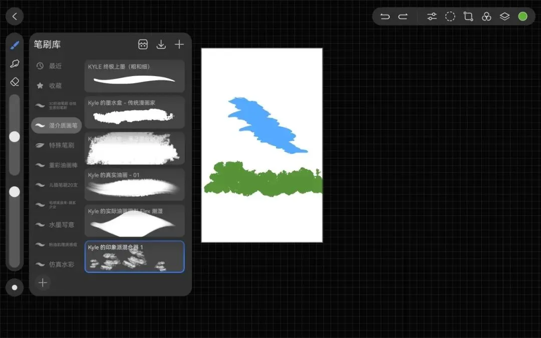 目前我的体验就是前两个笔刷很好用,第一个可以拿来画线稿,描绘轮廓很好用,第二个用来画树,草丛。