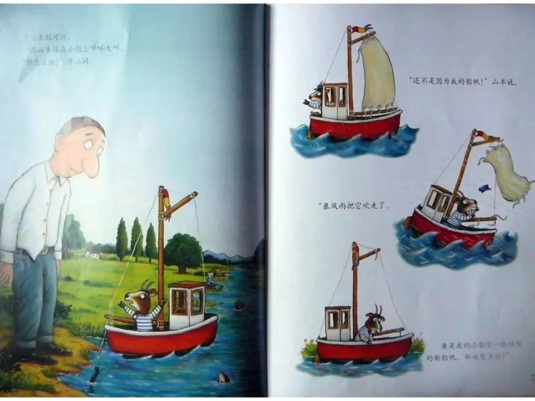 “暴风雨把它吹走了。要是我的小船有一张结实的新船帆,那该有多好!”