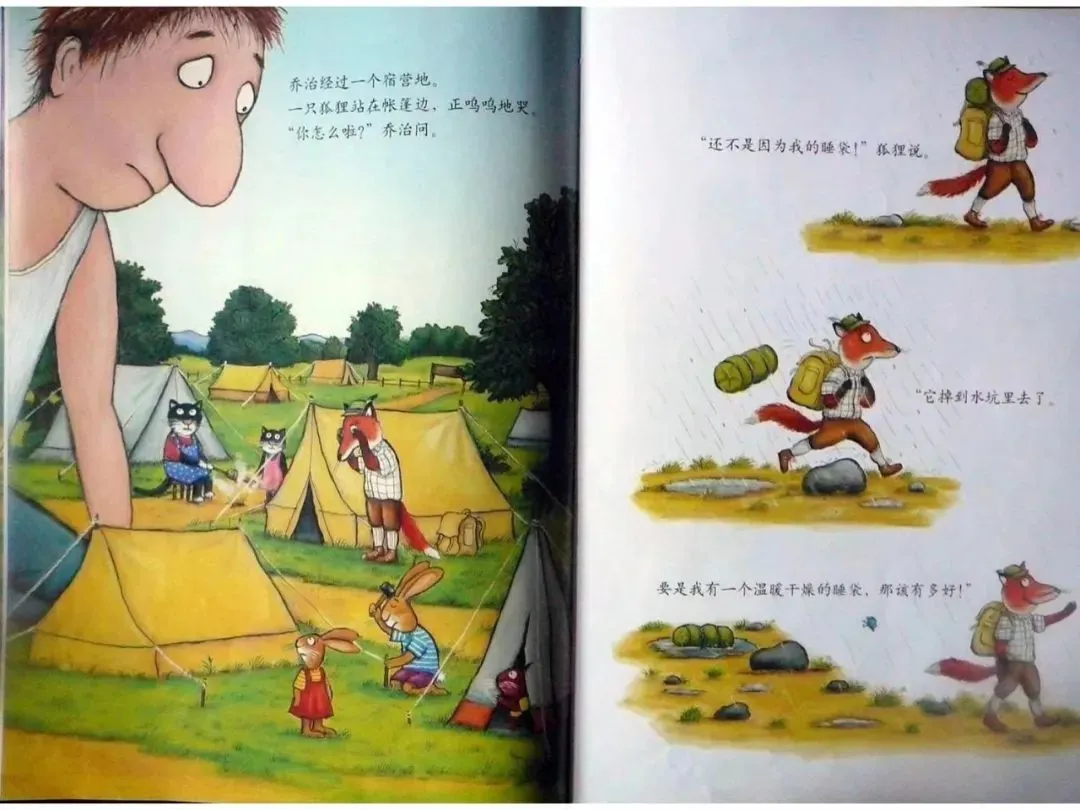 乔治经过一个宿营地。一只狐狸站在帐篷边,正呜呜地哭。“你怎么啦?”乔治问。