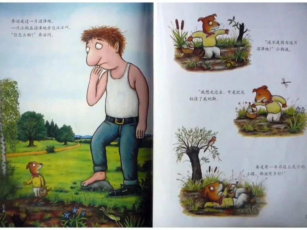 “还不是因为这片沼泽地!”小狗说。“我想走过去,可是烂泥粘住了我的脚。要是有一条不这么泥泞的小路,那该有多好!”