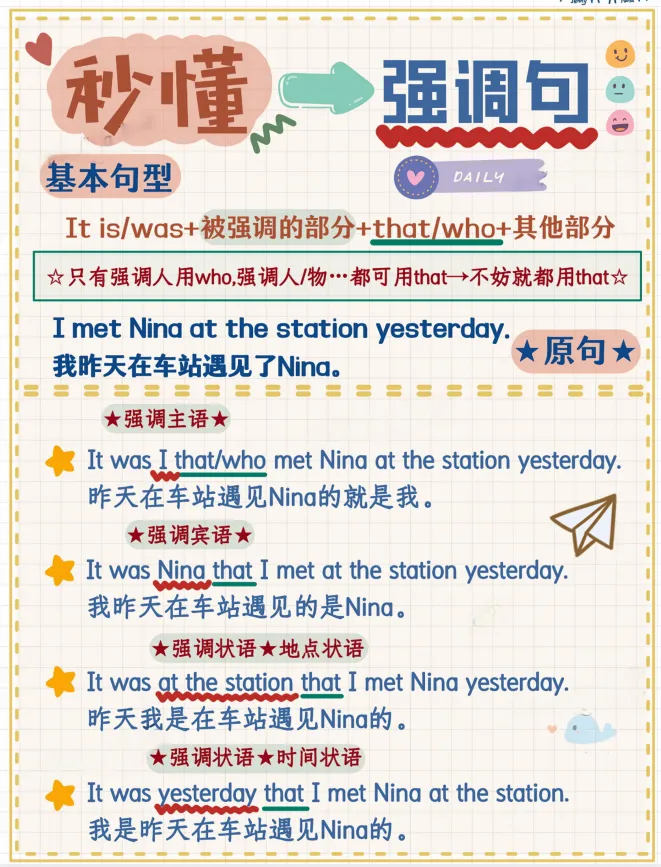 英语宝藏资料【秒懂强调句】收藏备用,可下载打印