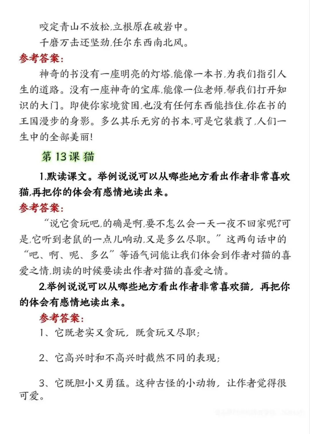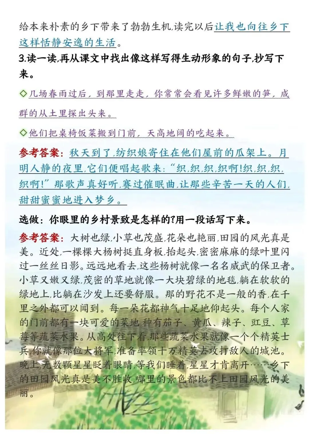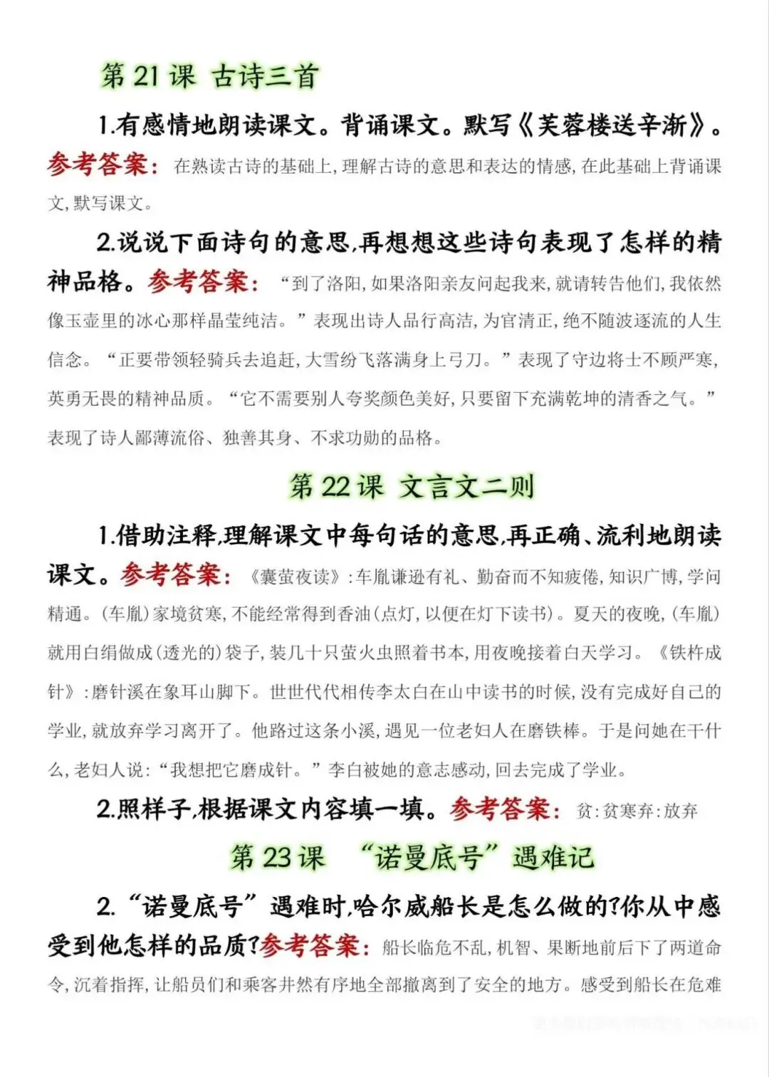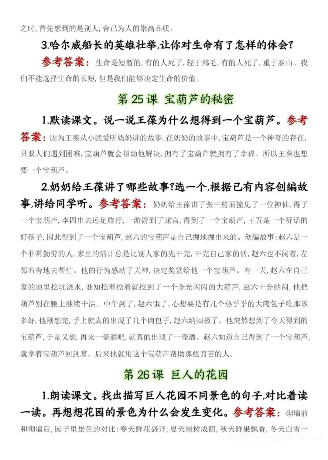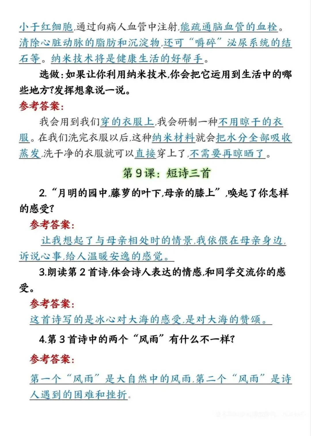 四年级下册语文课后练习题参考答案,电子版可下载打印