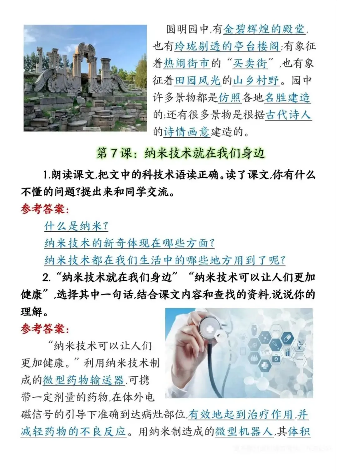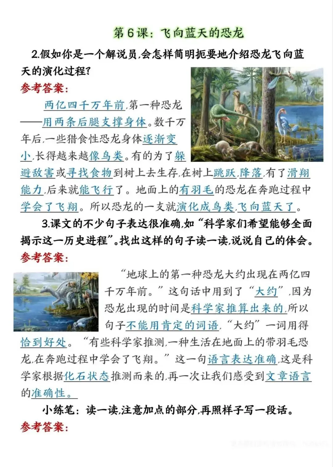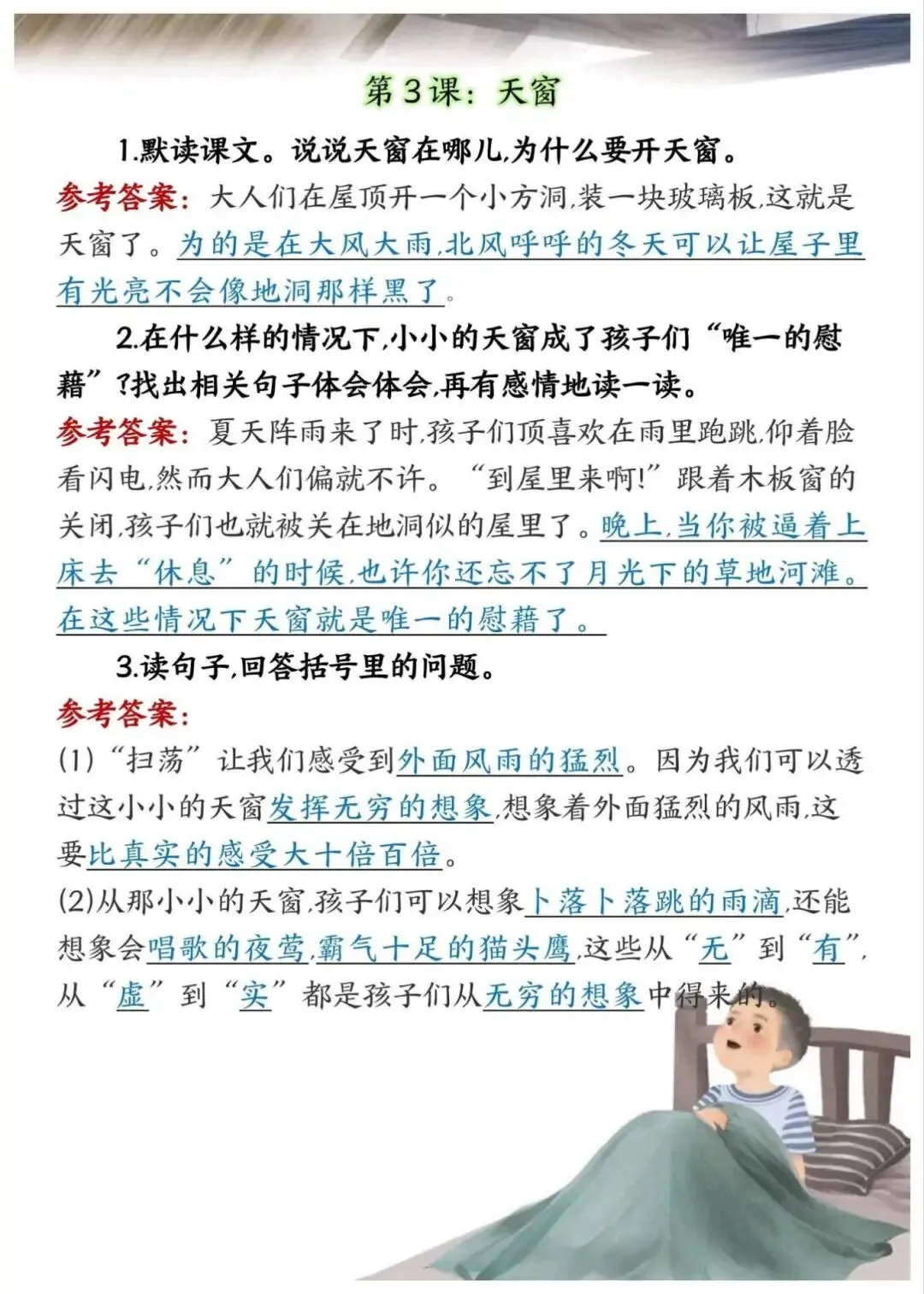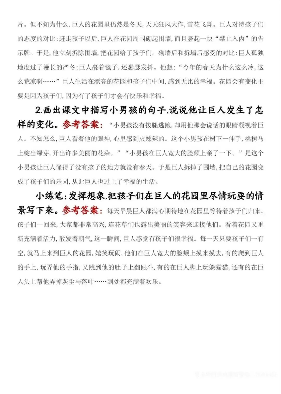 四年级下册语文课后练习题参考答案,电子版可下载打印