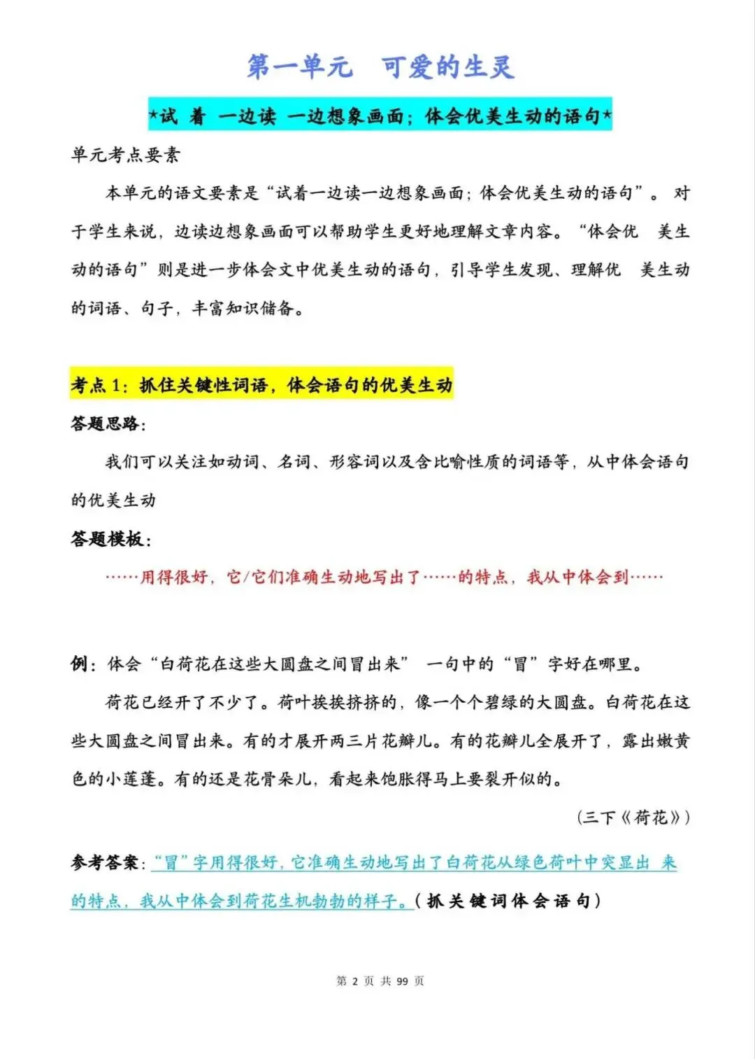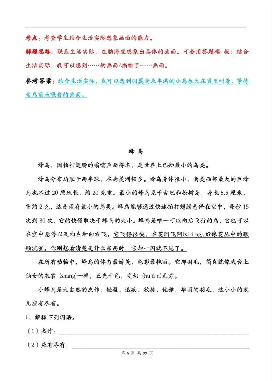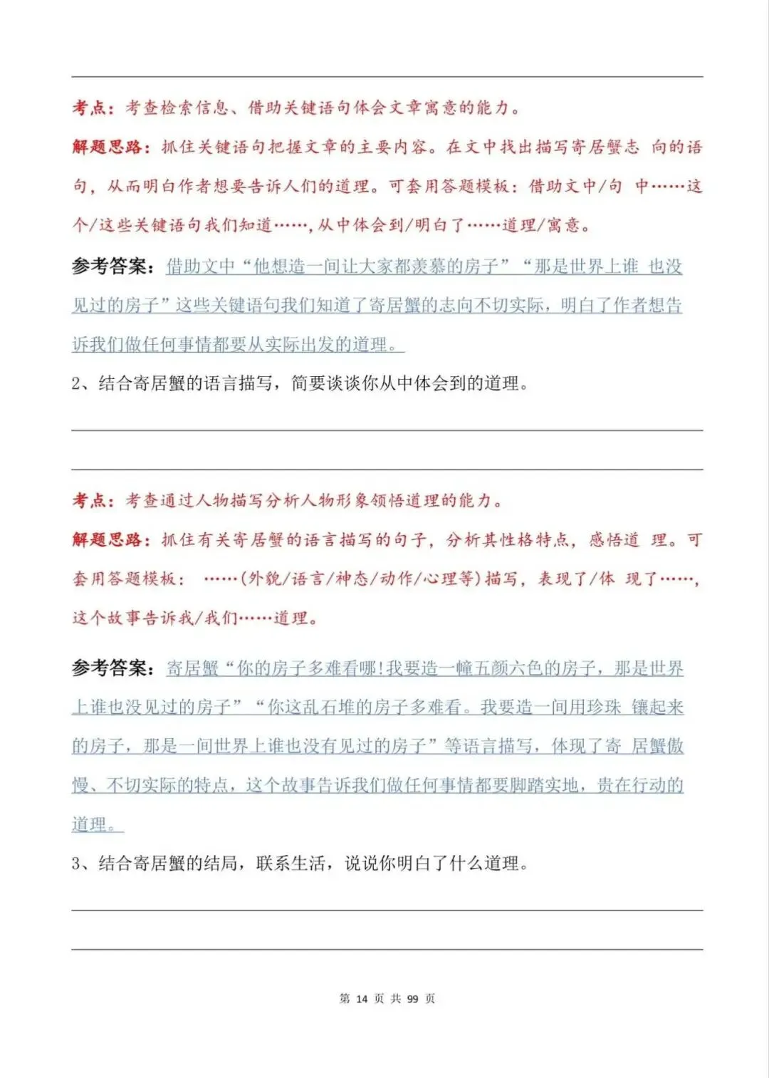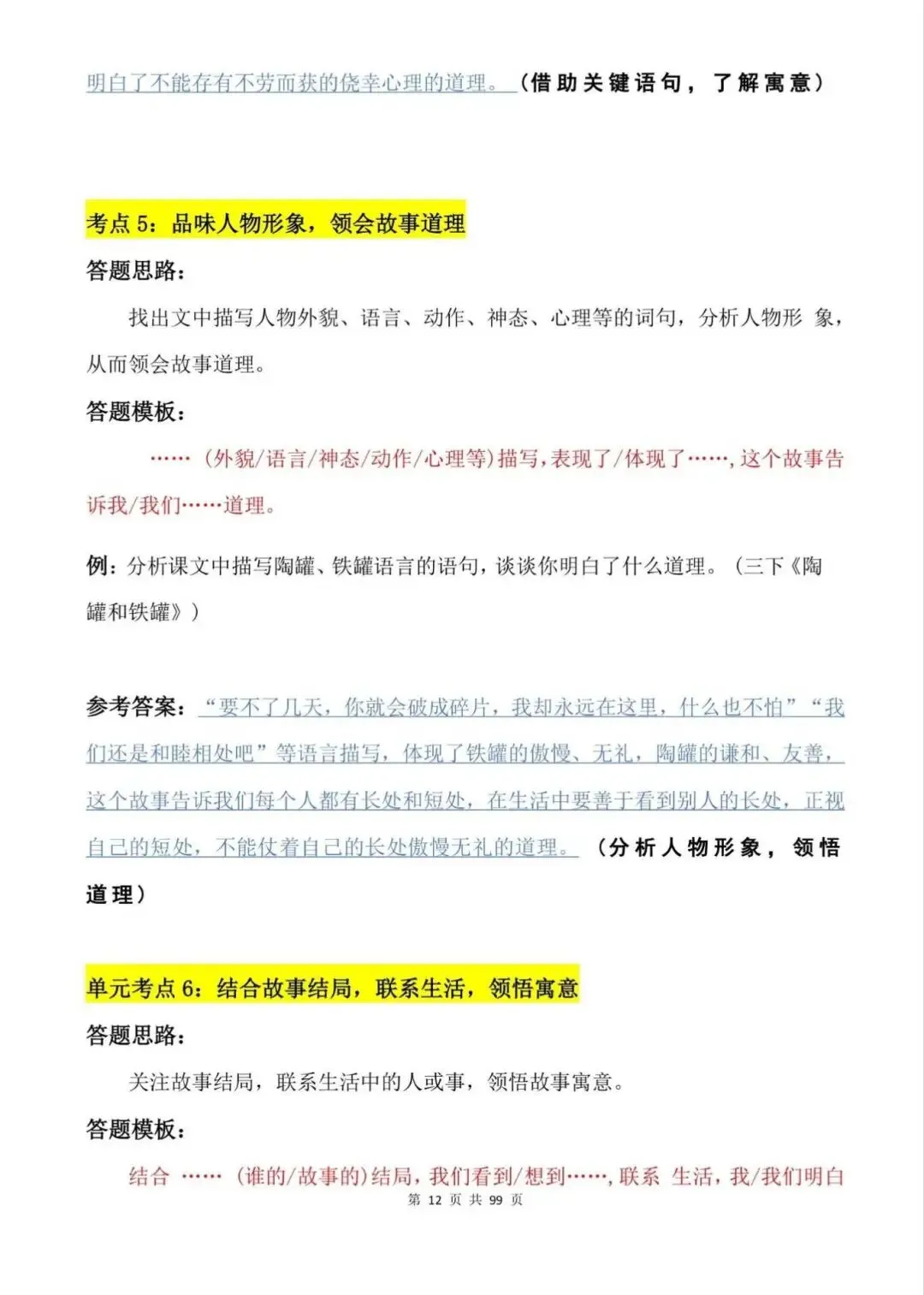三年级下册语文阅读理解与答题模板,电子版可下载打印