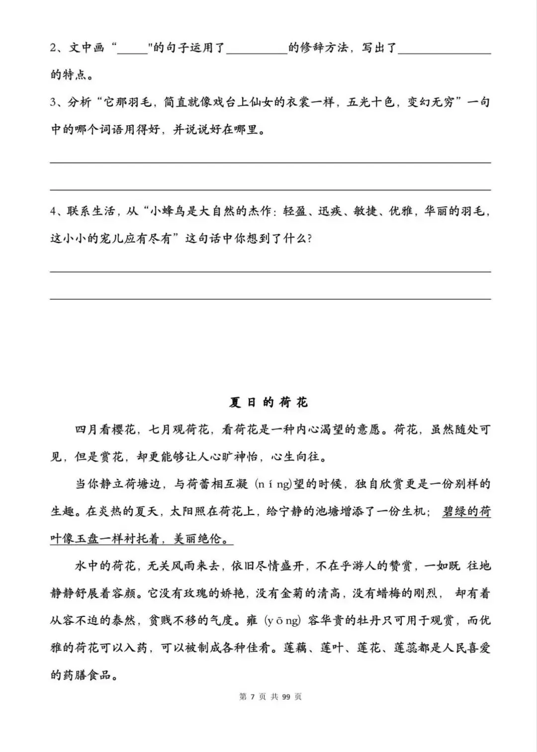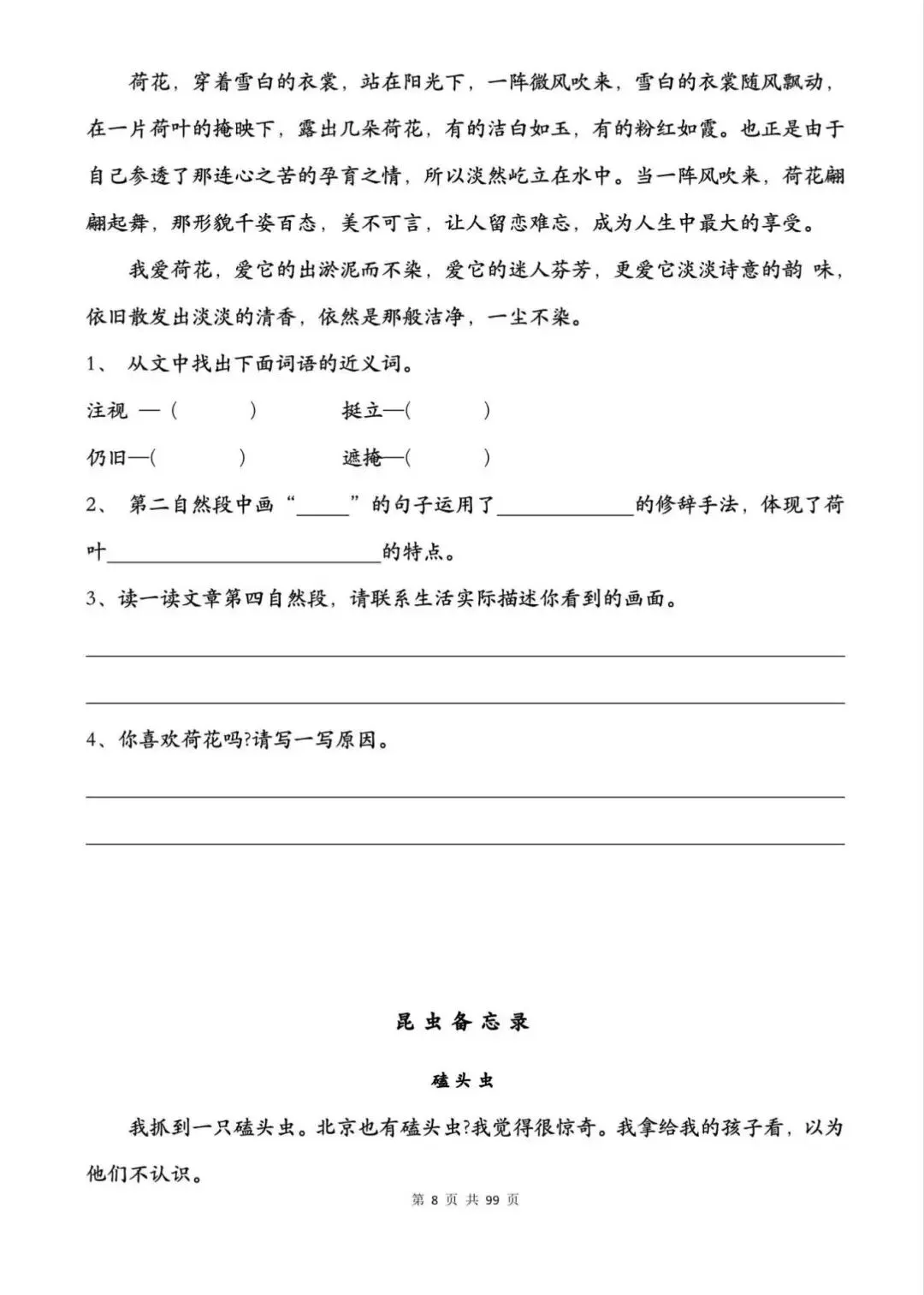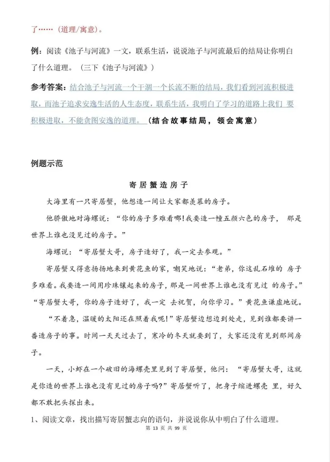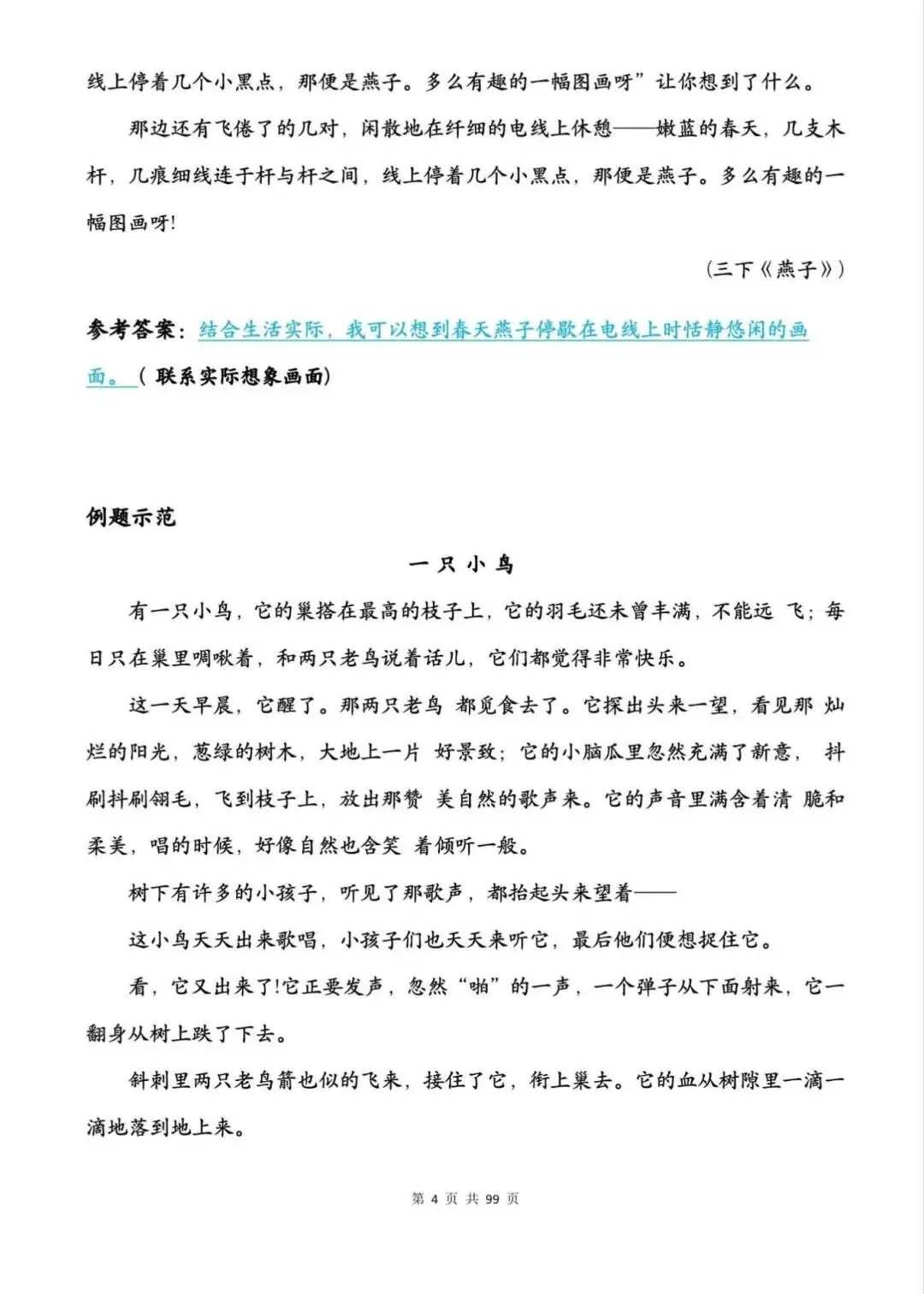 三年级下册语文阅读理解与答题模板,电子版可下载打印
