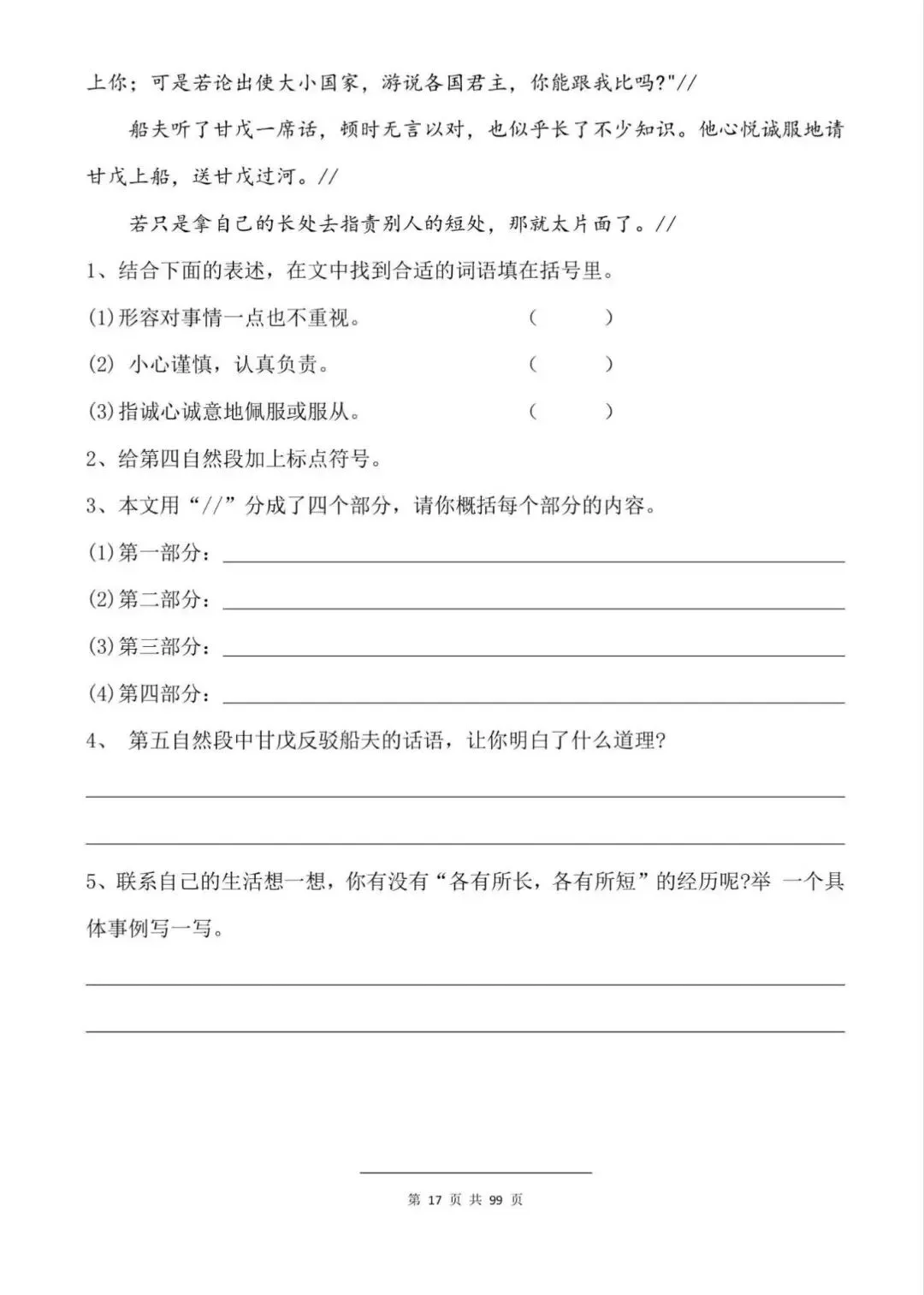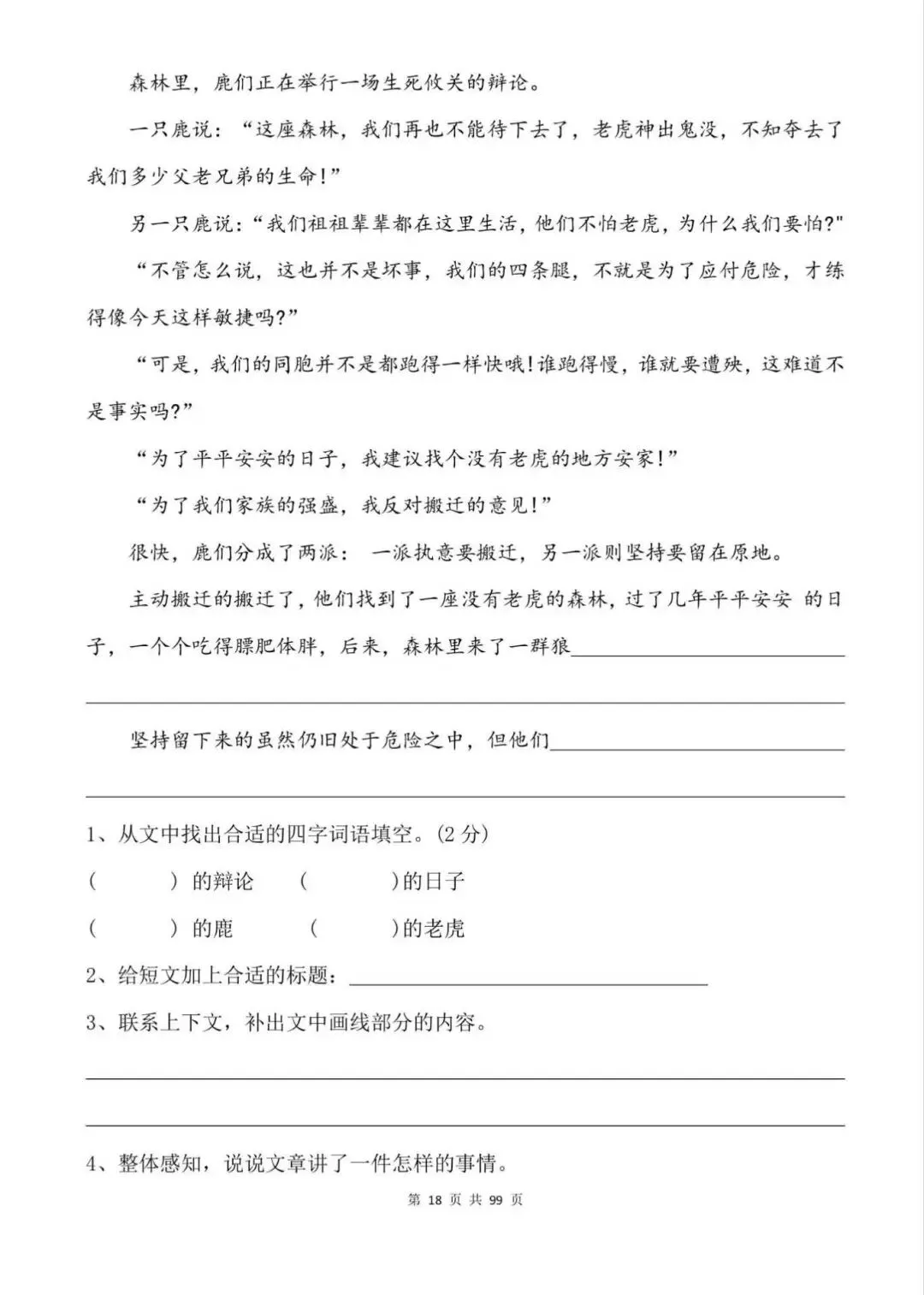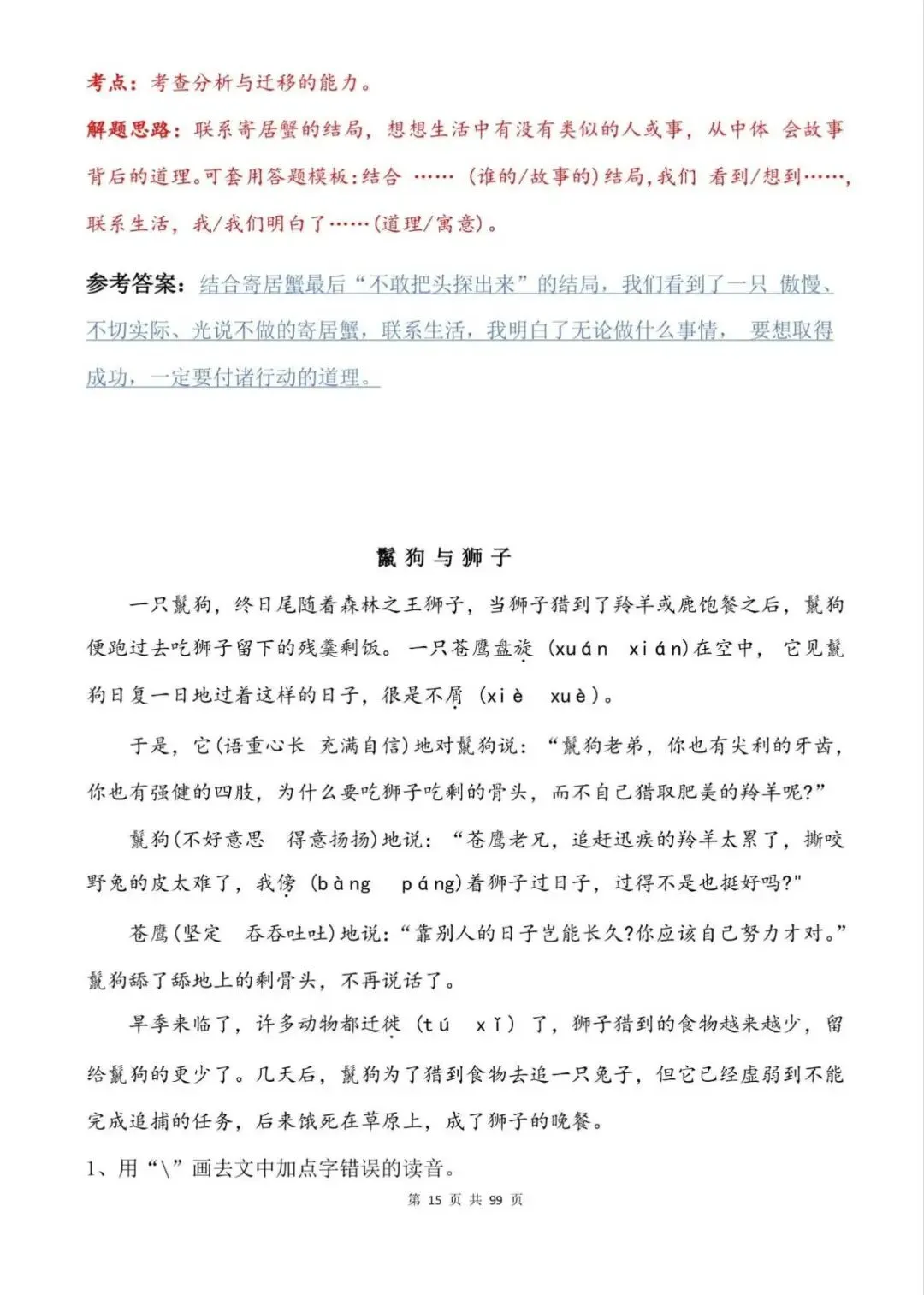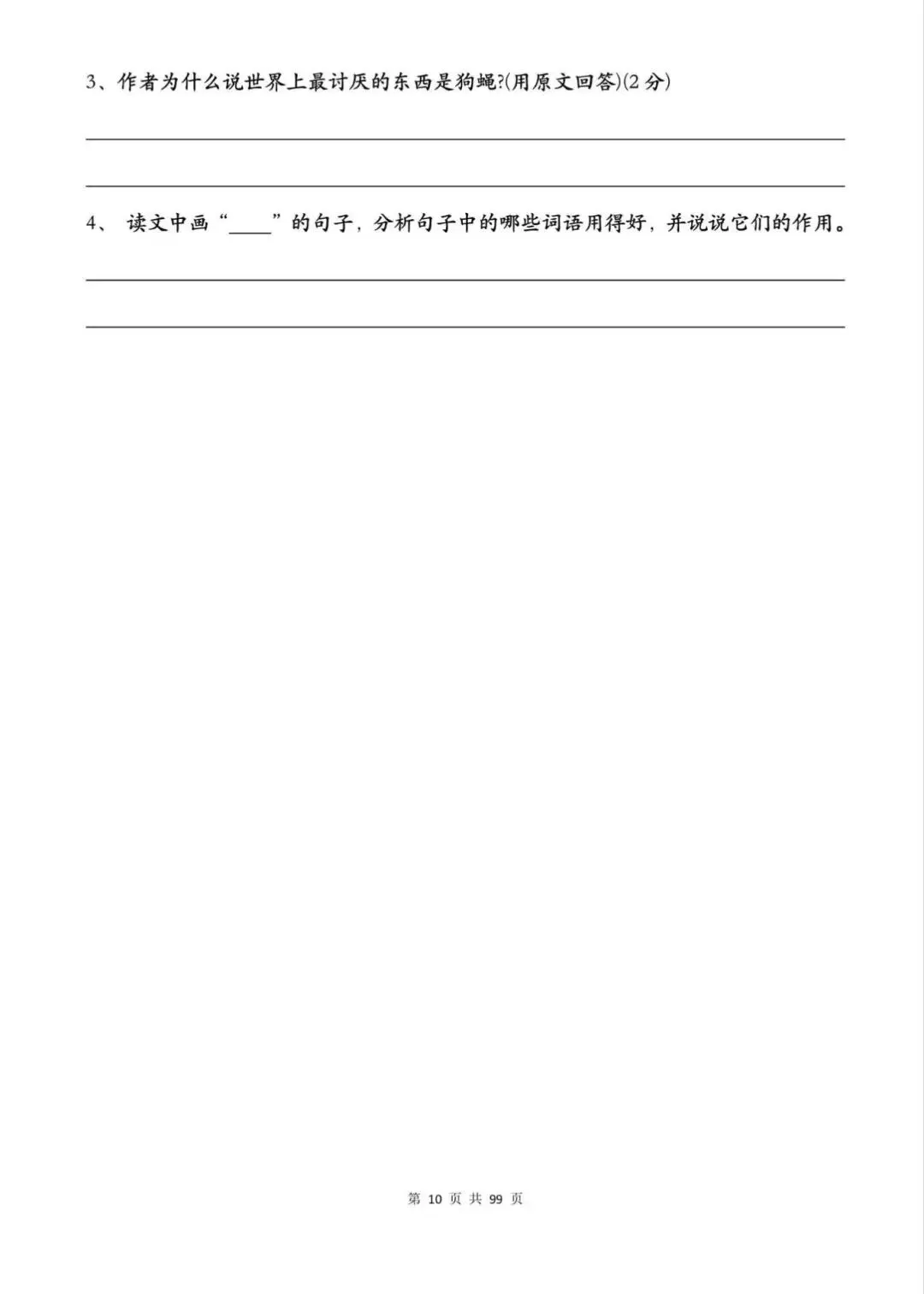 三年级下册语文阅读理解与答题模板,电子版可下载打印