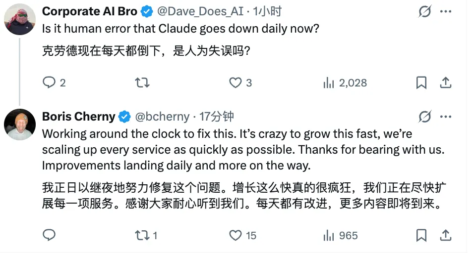 • 也有用户借机吐槽近期额度、限流、宕机问题,呼吁Anthropic在高速增长中别忽略用户体验。 -