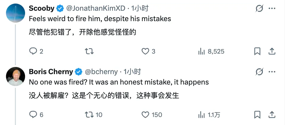• 值得一提的是,原“自爆”帖已被社区标记为可疑(发帖人5天前刚称自己失业,且在推广链接),但Boris的回应仍按真实事故处理,显示出公司对任何潜在风险的零容忍。 -