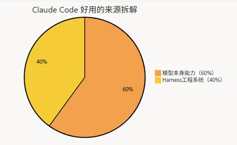 但真正让我震惊的,是这些反而不是重点。当然,这些东西都存在,但它们不是 Claude Code 区别于其他工具的核心。翻到中段之后,我逐渐形成了一个非常清晰的判断:Claude Code 好用,大约 60% 来自模型本身的能力——Opus 系列模型确实比很多竞品更强。但另外 40%,来自围绕模型构建的一整套工程系统。而这 40%,才是这次泄露真正的价值所在。在 AI 产品圈,今年有一个被 OpenAI 和 Anthropic 都反复提及的概念,叫 Harness(控制系统)。理解这个概念,有一个非常直观的比喻:把 AI 模型想象成一匹野马。它力量极强,速度极快,但输出难以预测——你不知道它下一步会往哪个方向跑,会不会突然停下来,会不会把骑手甩出去。Harness,就是套在这匹野马身上的那套装备。缰绳、马鞍、方向盘、护栏。Harness 决定的不是这匹马”能跑多快”,而是: