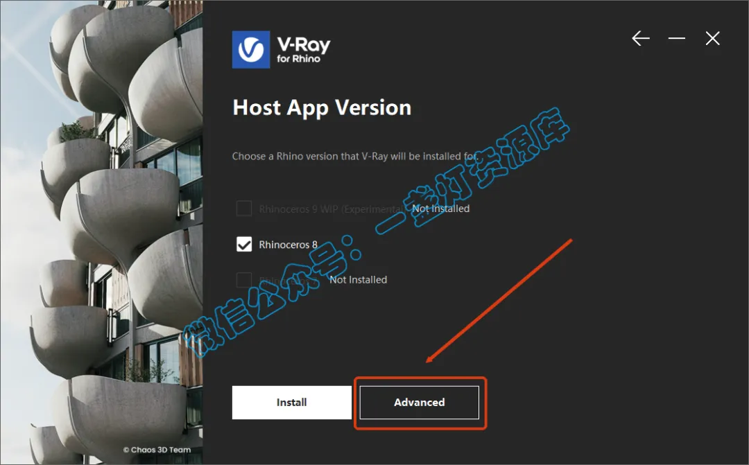 4.安装程序自动识别Rhino版本,点击【Advance】