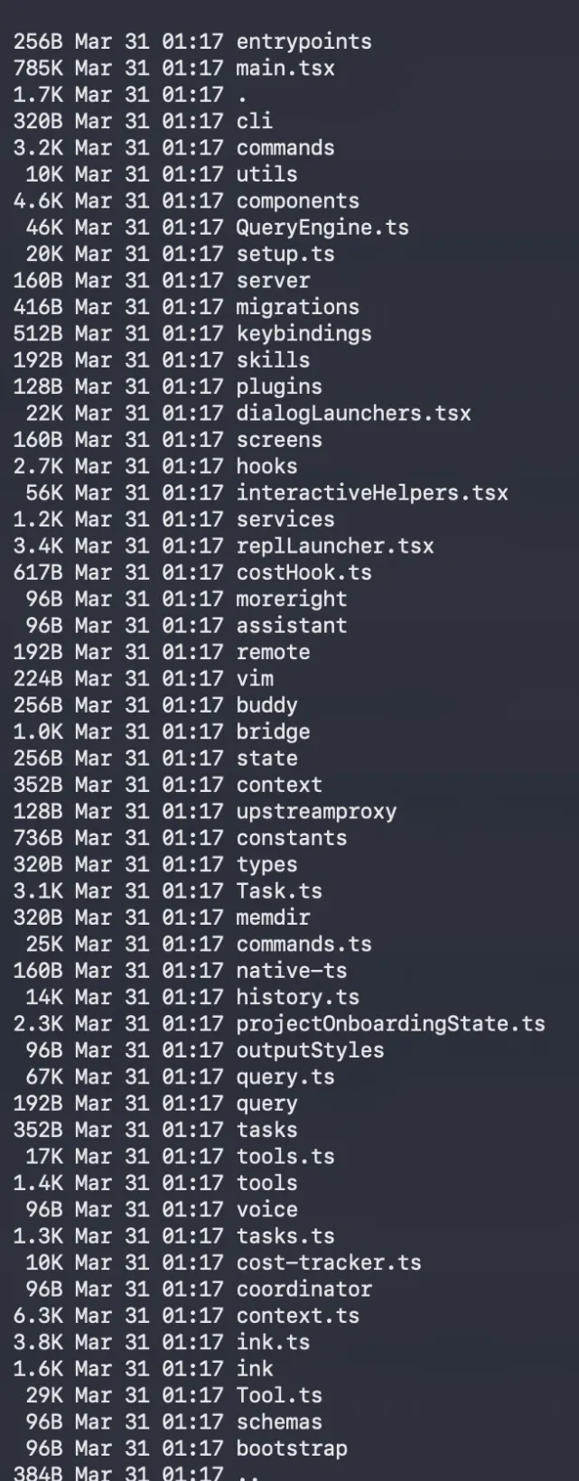 核心架构相关代码:与Agent Harness相关的主循环、工具池、记忆层、远程权限桥接等核心模块的代码结构,这也是本次事件中最具行业参考价值的部分。