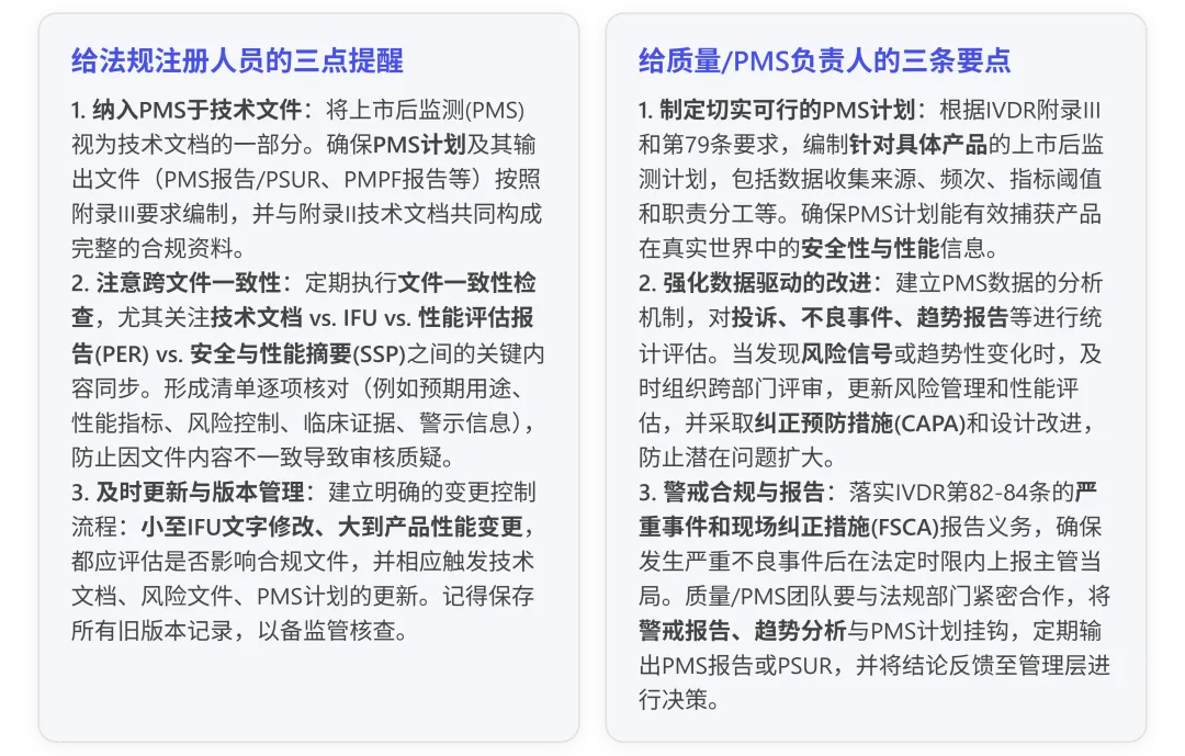 IVDR附录III详细规定了技术文档中关于上市后监督(PMS)的文件组成,与法规第78-81条一起构成了制造商在上市后阶段的主要义务。