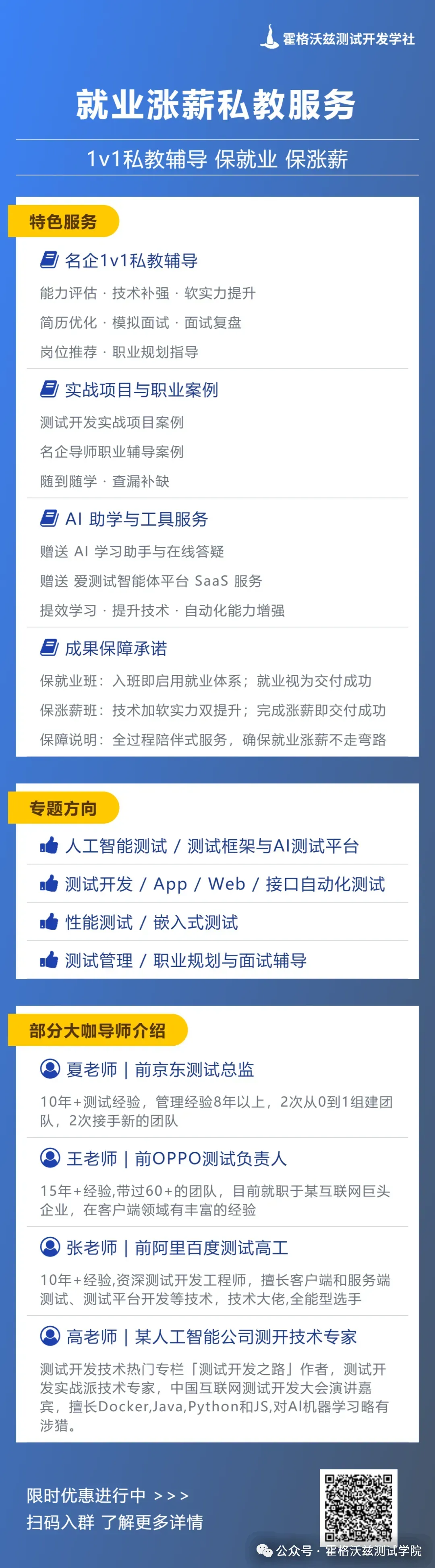 同时,学社结合真实行业需求,为在职测试工程师与高潜学员提供名企大厂 1v1 私教服务,用于个性化能力提升与工程实践指导。