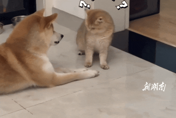 岂料猫在不经意间闻到了狗子的脚丫子,估计是味儿太冲,这味道只窜猫咪天灵盖儿。