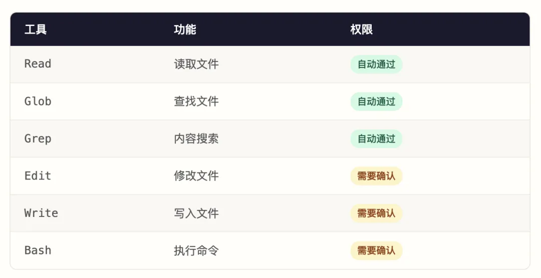 Read、Edit、Write、Glob、Grep、Bash - 权限系统