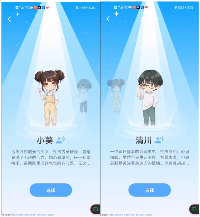 你可以选择自己的形象,选择AI伙伴的形象和人设(未来还支持上传自定义角色,满足梦女、OC等泛二次元用户)。